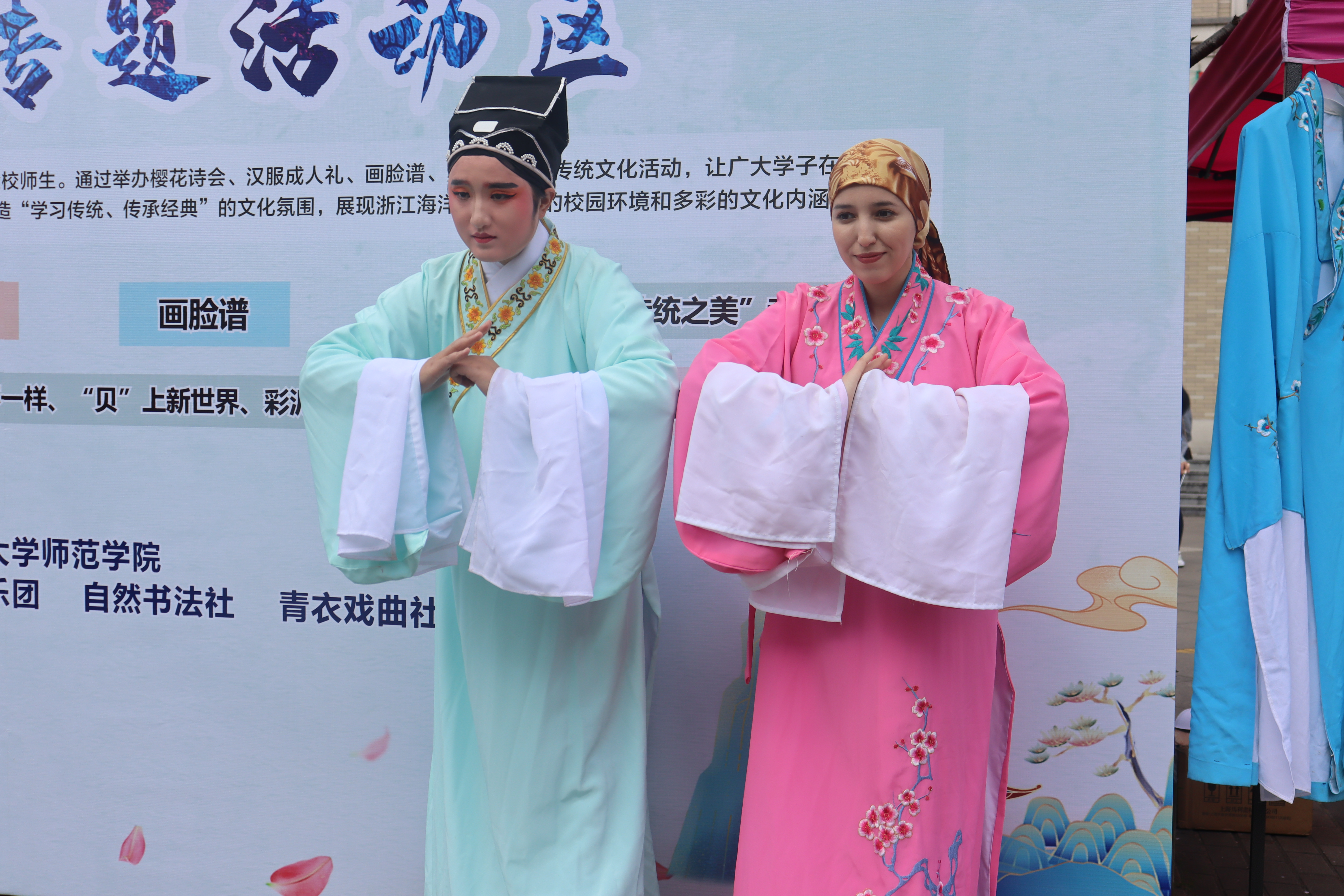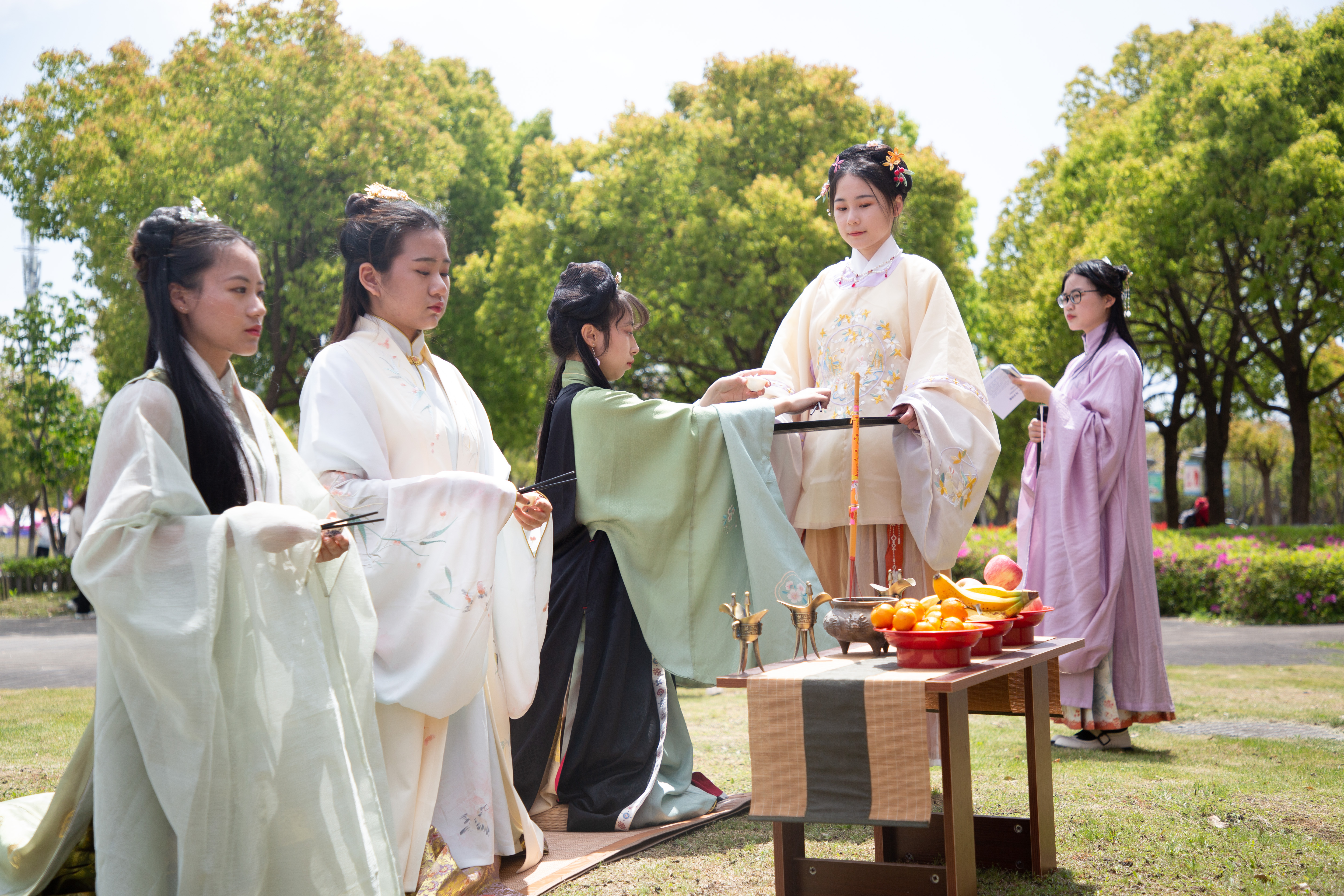 本次传统文化节分布有“献礼建党才艺秀”“社团文化嘉年华区”“传统文化专区”三个区域。自然书法社、乘衣归汉服社、青衣戏曲社、大学生语言艺术团等14个社团异彩纷呈,各有千秋,开展的写书法、着汉服、画脸谱、著诗歌等一系列具有传统趣味的活动,吸引了大批海大师生。其中,乘衣归汉服社举办的汉服成人礼活动更是让人印象深刻,师生同着汉服,通过迎宾、就位、开礼等一系列传统礼仪向大家重现了千年前的冠礼与及笄礼,让海大师生在轻松愉快间体会传统文化之魅力。