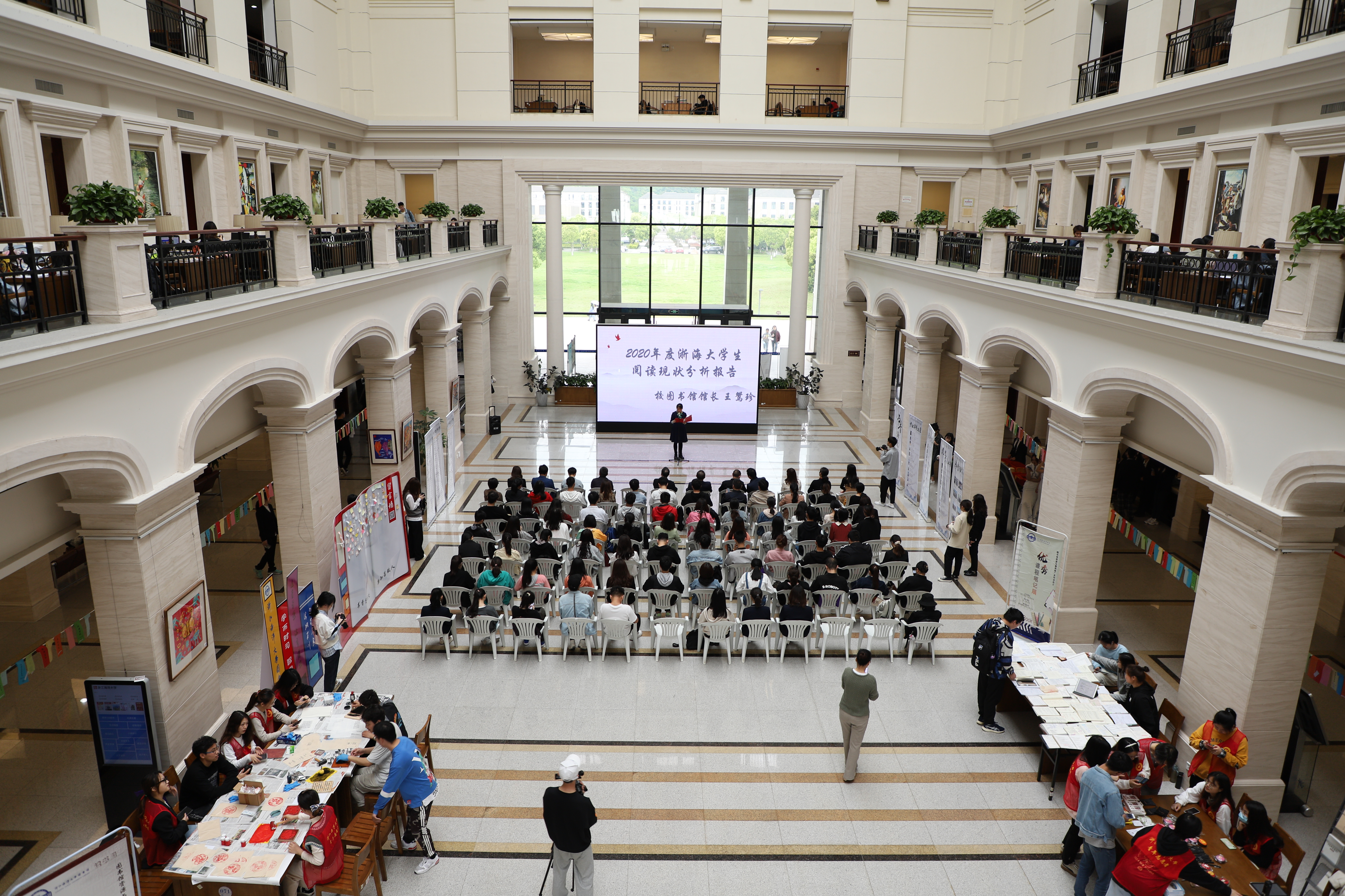 校图书馆馆长王鸳珍做了关于2020年度浙海大学生阅读现状的分析报告,王馆长在报告中指出,2020年学校进馆读者达136.58万人次,图书馆各类数据库访问人数高达331万人。其中最受欢迎的图书中基本涵盖了古今中外的经典作品,前几年经常出现的玄幻小说之类图书,退出了热门书单,一方面可见经典作品的经久不衰,更重要的是同学们的阅读品味、阅读境界都在提升。