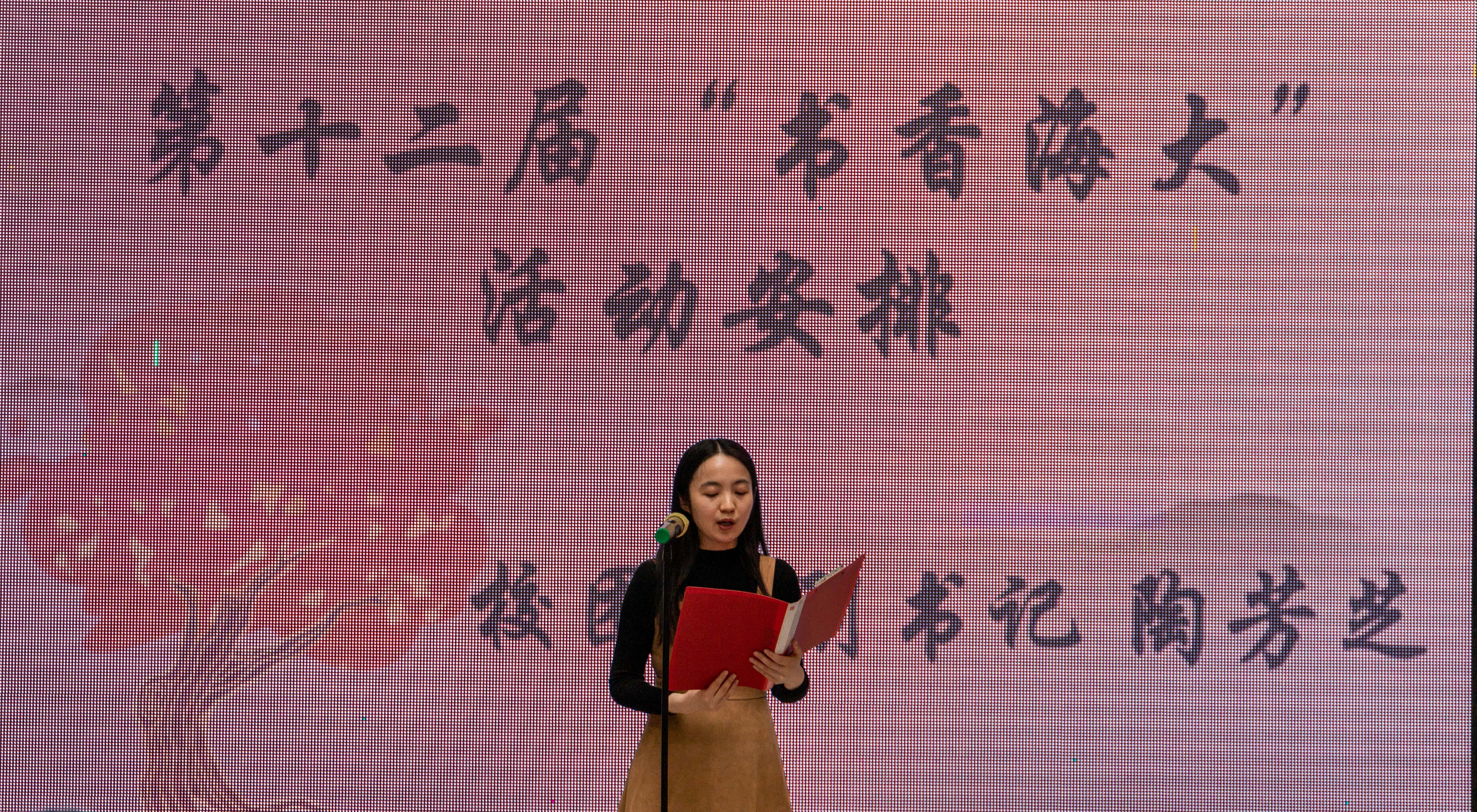 伴随着诗朗诵《盛世中国》,启动仪式正式拉开了序幕。校团委副书记陶芳芝代表主办方介绍了永利集团官网第十二届“书香海大”的活动安排。