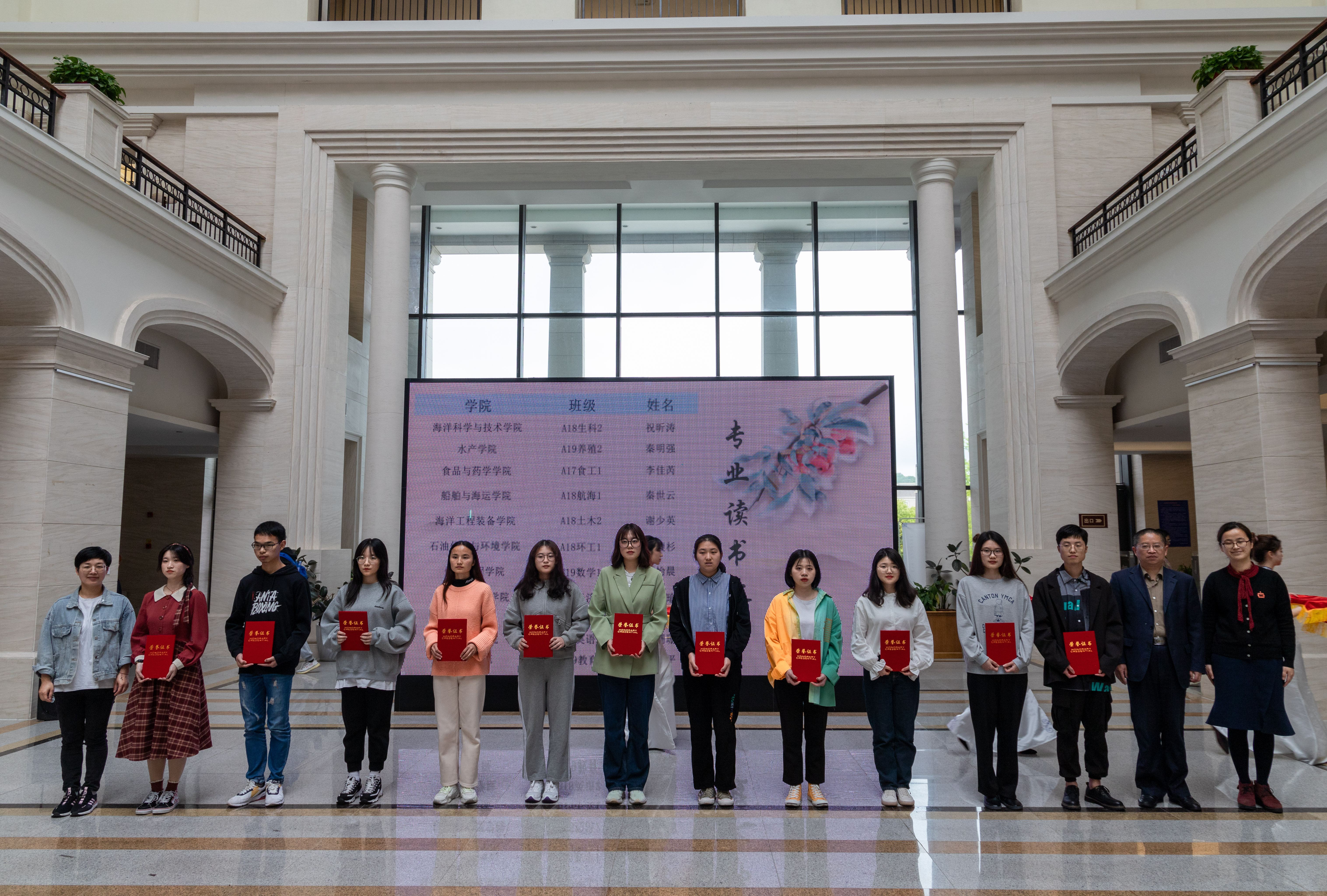 随后,由各位嘉宾为获得荣誉称号的同学与班级颁奖。据悉,本次“书香海大”读书活动在2020年度学生图书借阅量的基础上共评选出蔡倩瑜等11位书香达人,祝昕涛等11位专业读书之星,A18生科2班等10个书香班级,此外还评选出了程琦东等10位党史学习之星,鼓励青年学生学百年党史,读红色经典。
