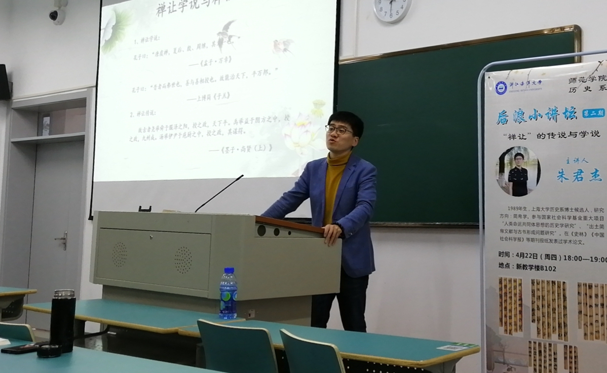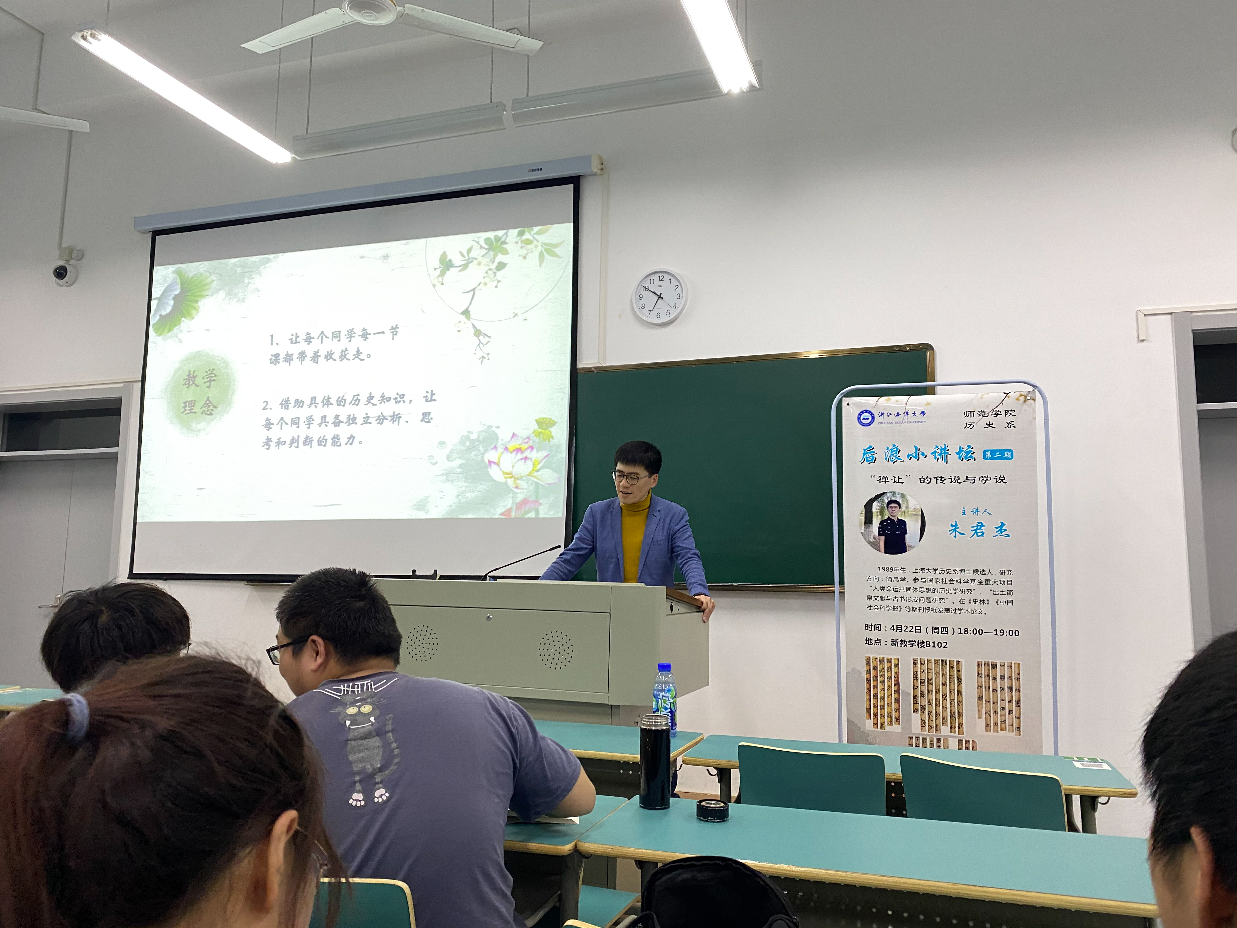 4月22日晚上六点,浙江海洋大学yl9193永利集团后浪小讲坛第二期在新教学楼B102开讲。本期讲坛主讲人为上海大学历史系博士候选人朱君杰。yl9193永利集团历史系系主任楼正豪老师担任主持,李胜老师、武锋老师及对此感兴趣的师院学生受邀参加。
