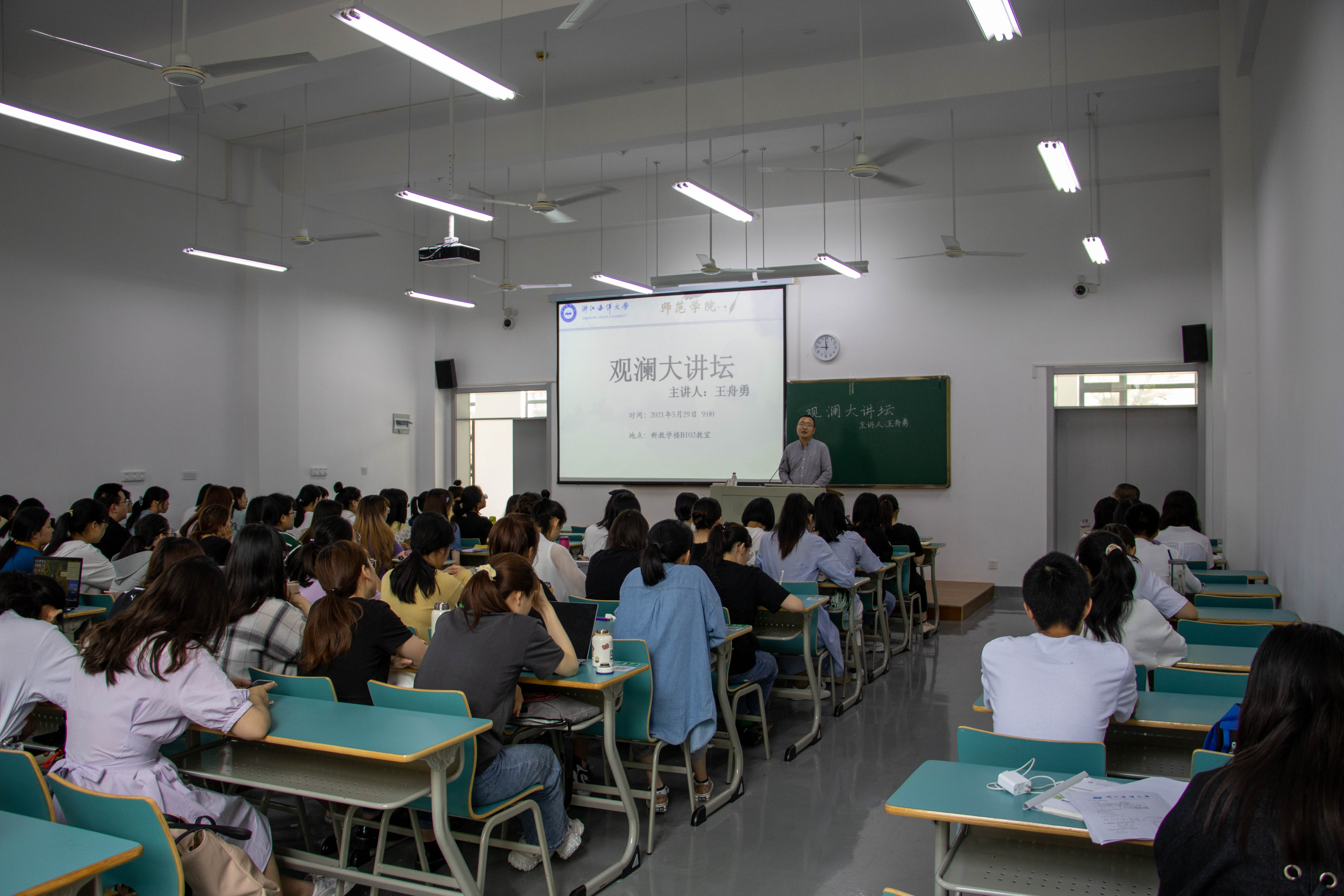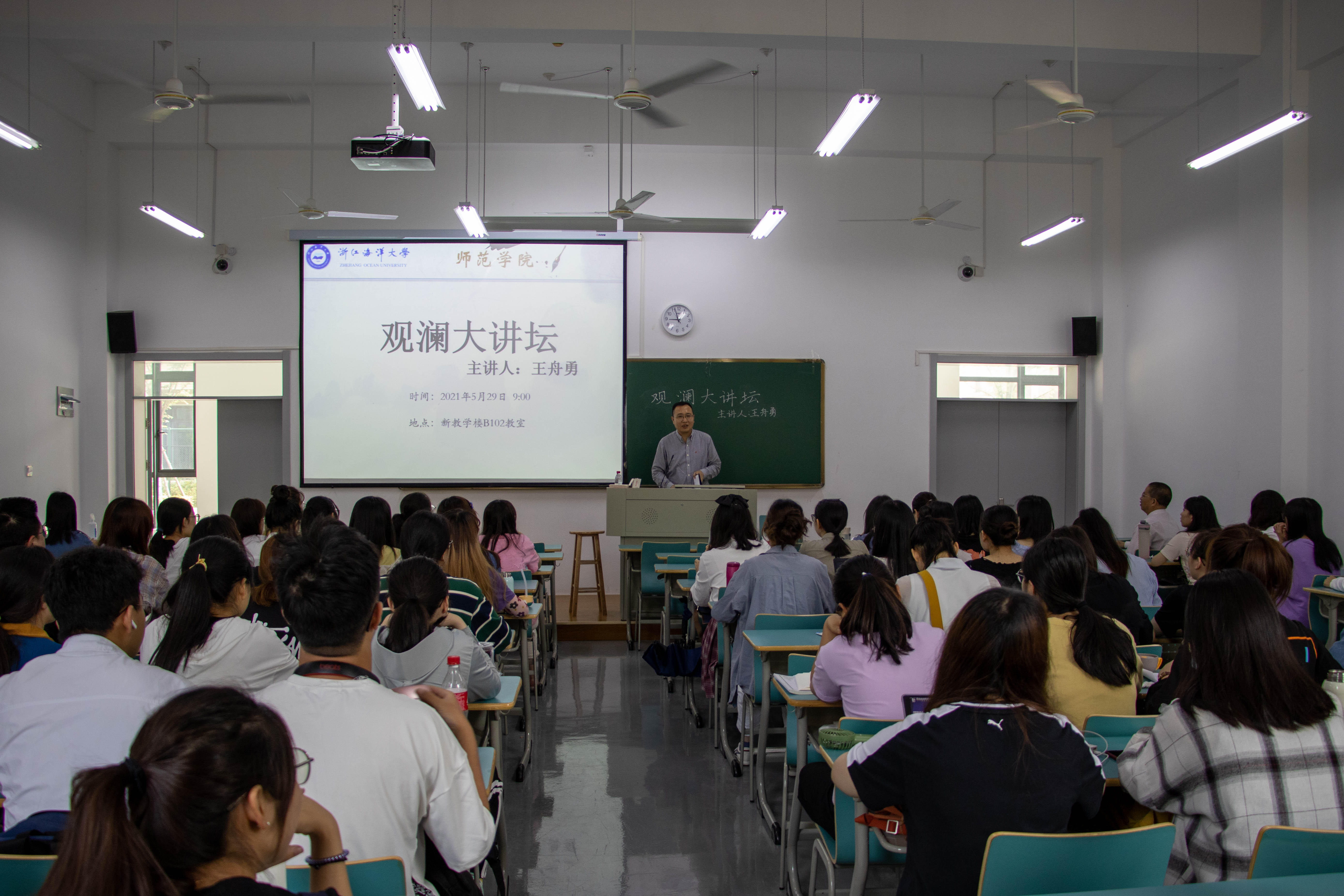 为提升师范生的语文核心素养,帮助同学更好胜任教师岗位,5月29日上午观澜大讲坛第六讲“从《山羊兹拉特》的教学设计,看语文教师应有的素养”在教学楼B102顺利举行。本次讲座由舟山教育局副局长、中学语文高级教师王舟勇老师主讲,小学教育(师范)系主任孔云老师主持。yl9193永利集团党委书记、副院长杨宁莅临现场,yl9193永利集团100余名学科语文专业研究生、汉语言文学(师范)本科生以及其他感兴趣的师范生参加。