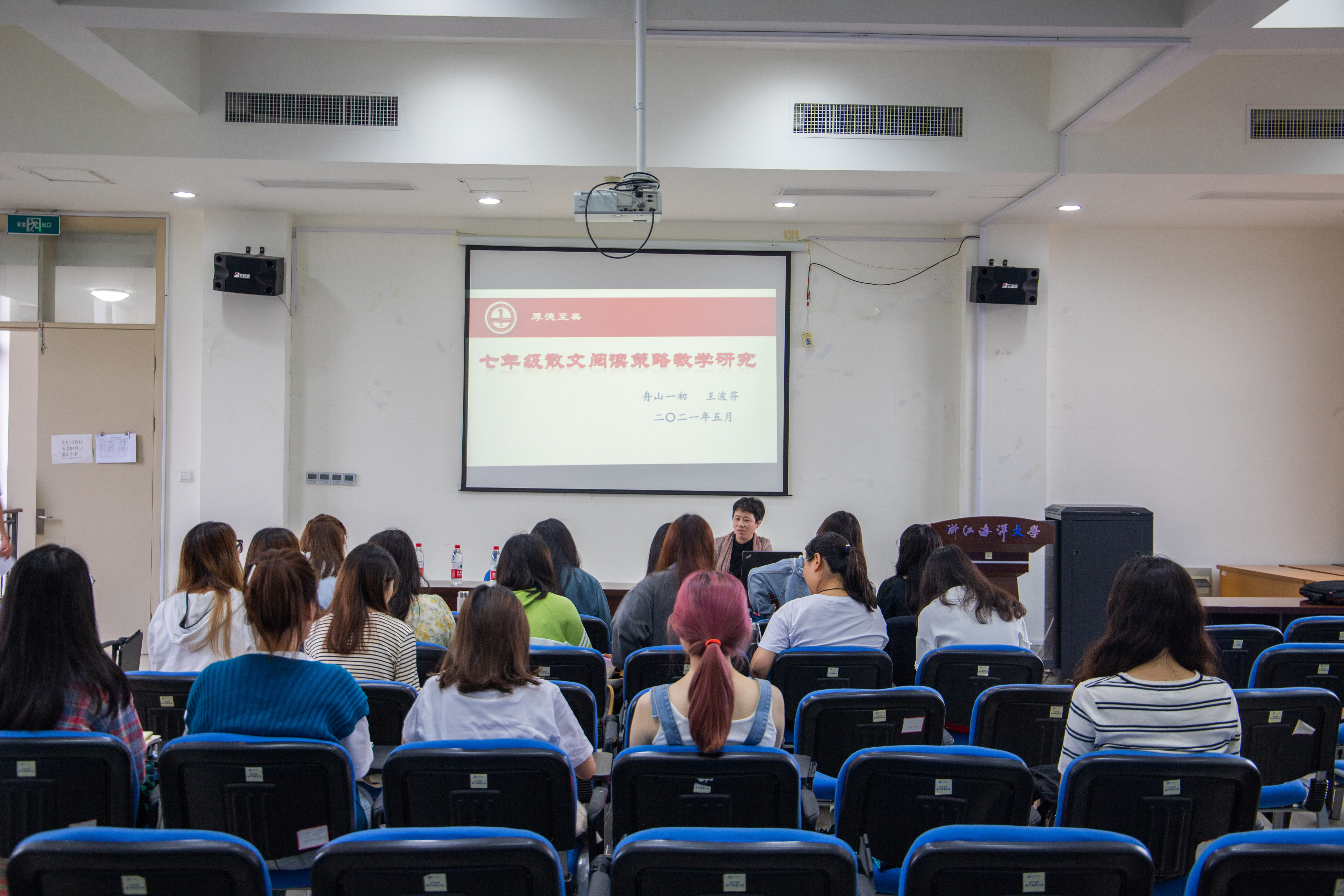 5月26日下午两点,七年级散文阅读策略教学研究讲座于文理楼301教室顺利举行。本次讲座由舟山市第一初级中学副校长王波芬老师担任主讲,30余名yl9193永利集团研究生参加。