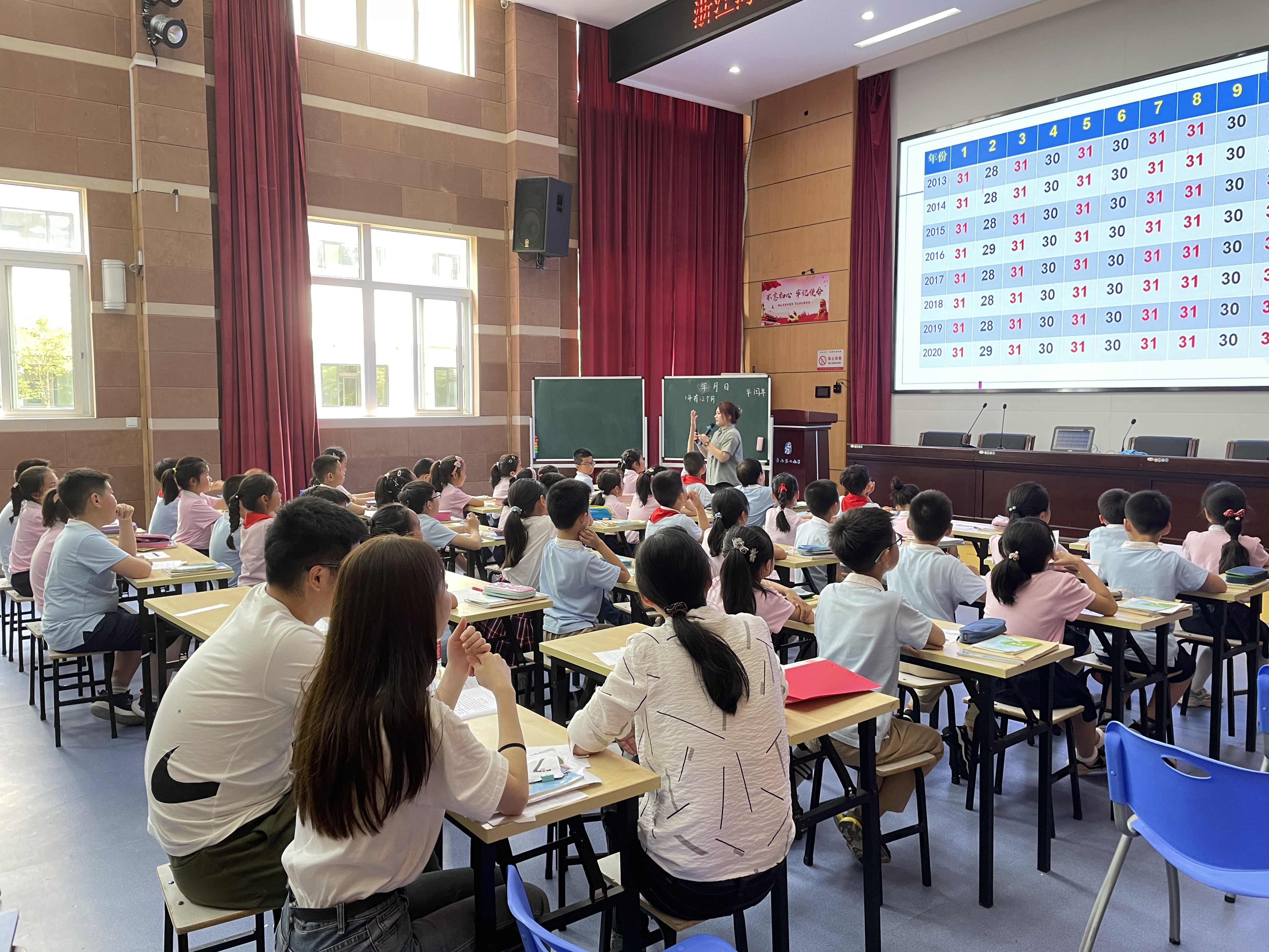 另一位数学组实习老师王伊莹从学生的生活经验出发,通过学生自制的年历卡引出课题《年月日》,并运用小组合作探究、学生互动、游戏等方式充分了解大小月和平闰年的知识,有效调动学生学习的积极性,感受数学来源于生活并应用于生活的乐趣。