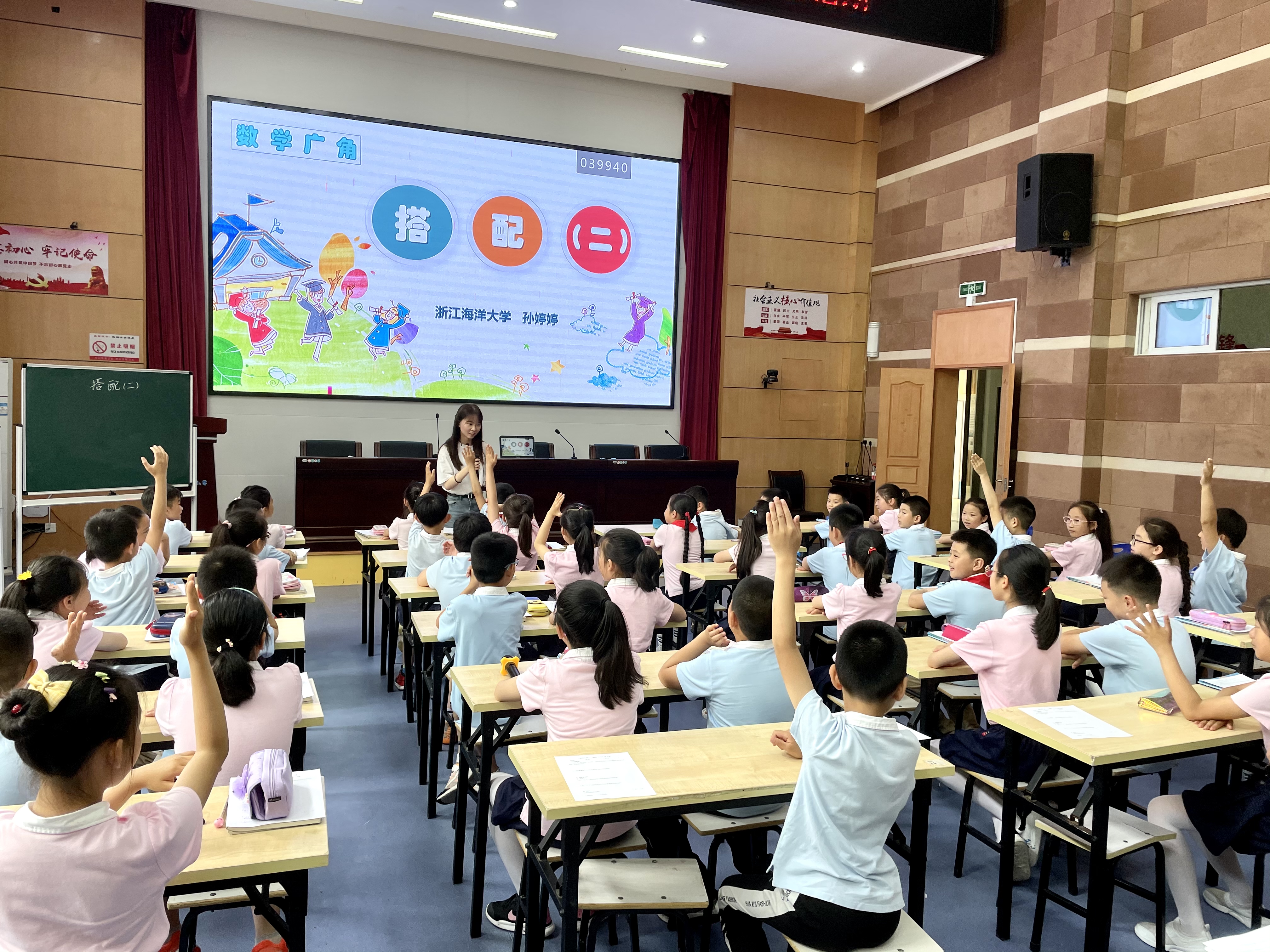 数学组实习老师孙婷婷由学生感兴趣的游戏引出课堂教学内容《搭配》,并创设美羊羊过生日的情境,激发学生学习欲望、提高课堂参与度,让学生在实际生活中体会搭配的方法以及懂得有序思考的重要性。通过一次次的练习、巩固、提升,使学生的数学思维得到锻炼,从生活中感受数学,体会数学的魅力。