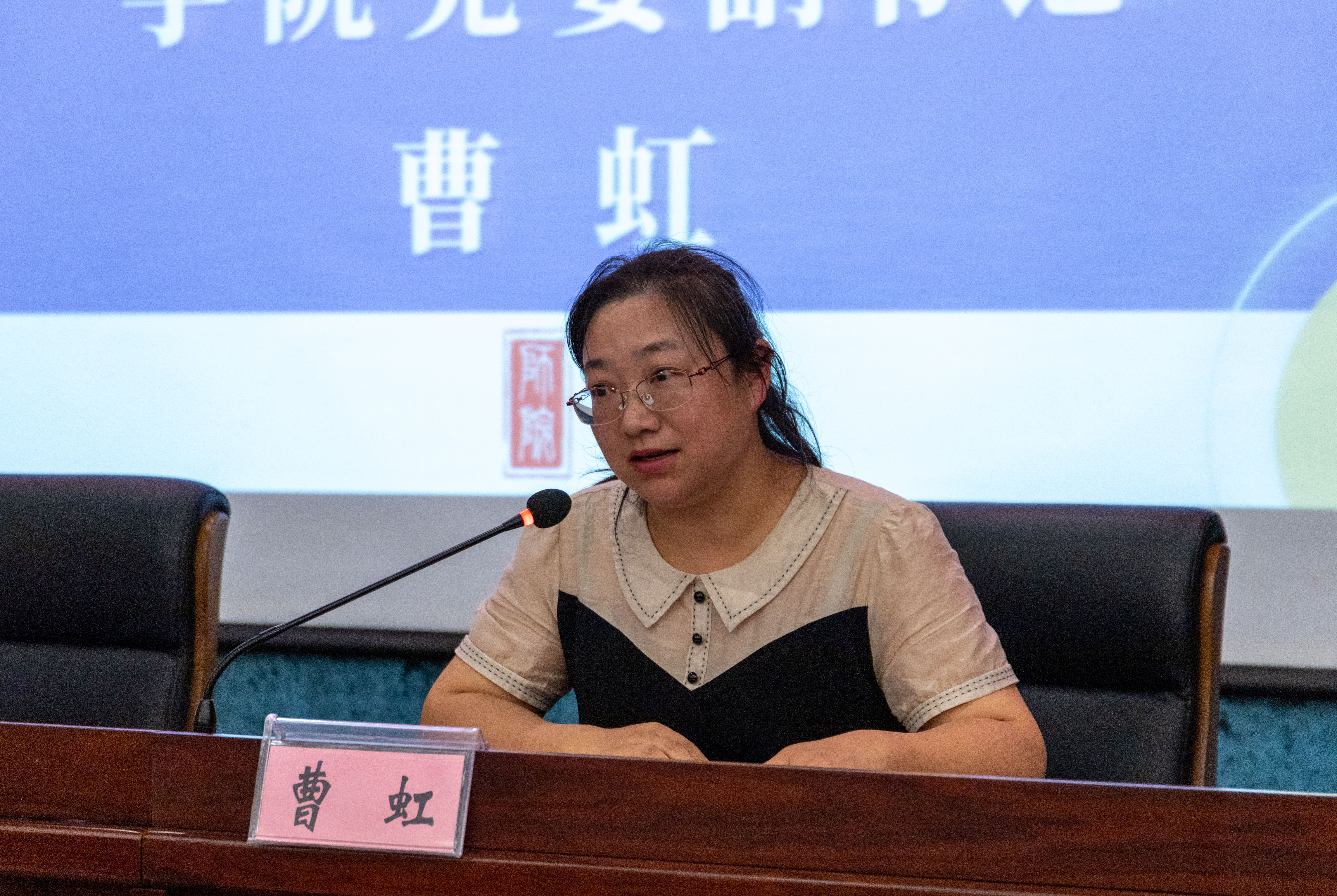 党委副书记曹虹向新同学提出了六个关键词:定位、规划、学习、奋斗、守法和感恩。曹书记表示,同学们既是大学新生也是老生,更应该抓准自身定位,对下一步方向做出清晰规划,以思辨的目光审视自己的学习奋斗过程。曹书记还告诫同学们,要严格遵守学校规章制度,维护国家安全,常怀感恩之心,时刻警醒、反思自我。