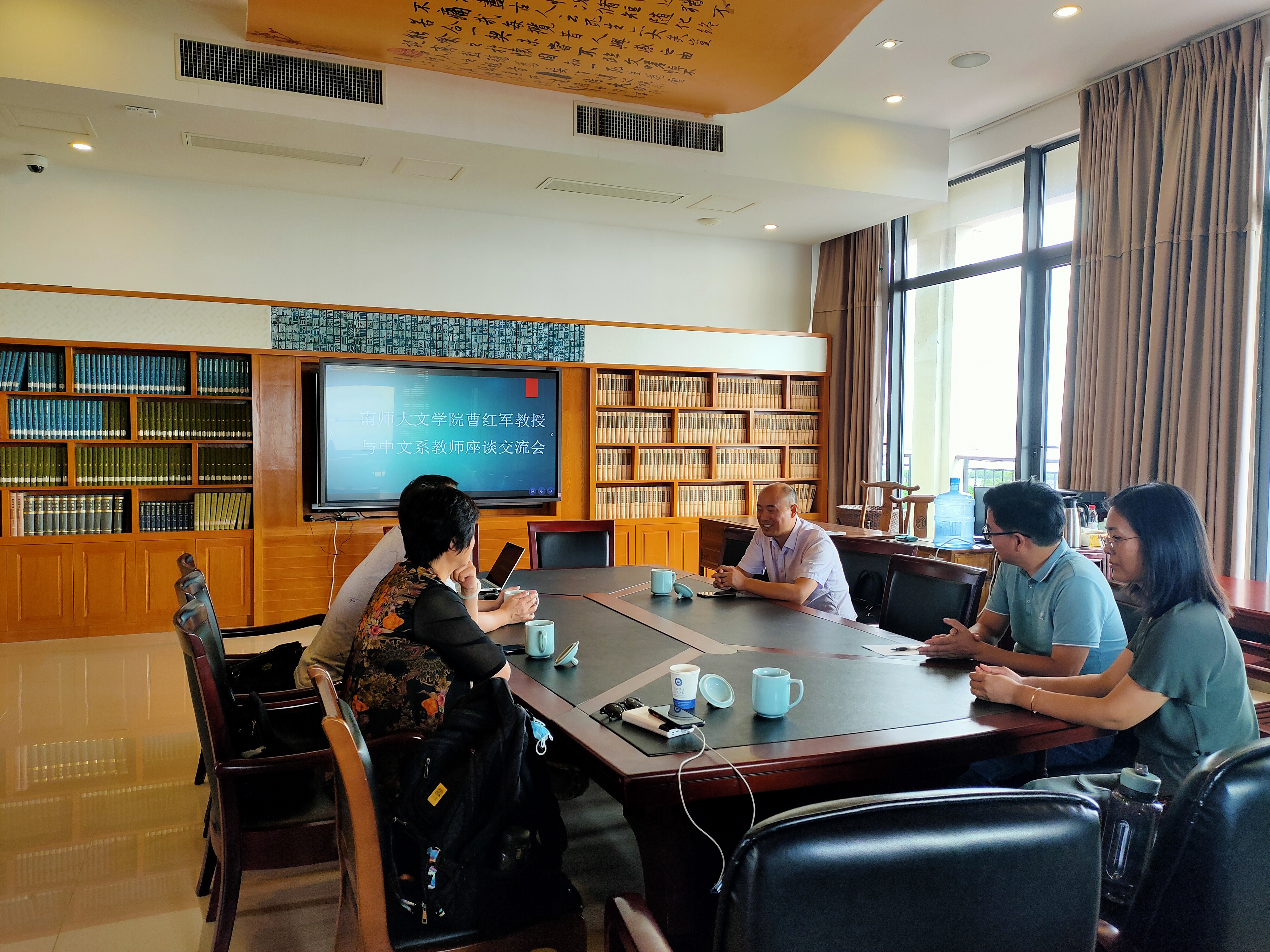 讲座前夕,曹红军教授一行在杨宁书记、图书馆办公室张杰主任的陪同下,参观了学校校园、图书馆和校史馆;与韩伟表院长、程继红教授、胡世文教授等专业教师进行了海洋文献领域学术研究的座谈交流,加深了yl9193永利集团与南京师范大学文学院彼此之间的了解。