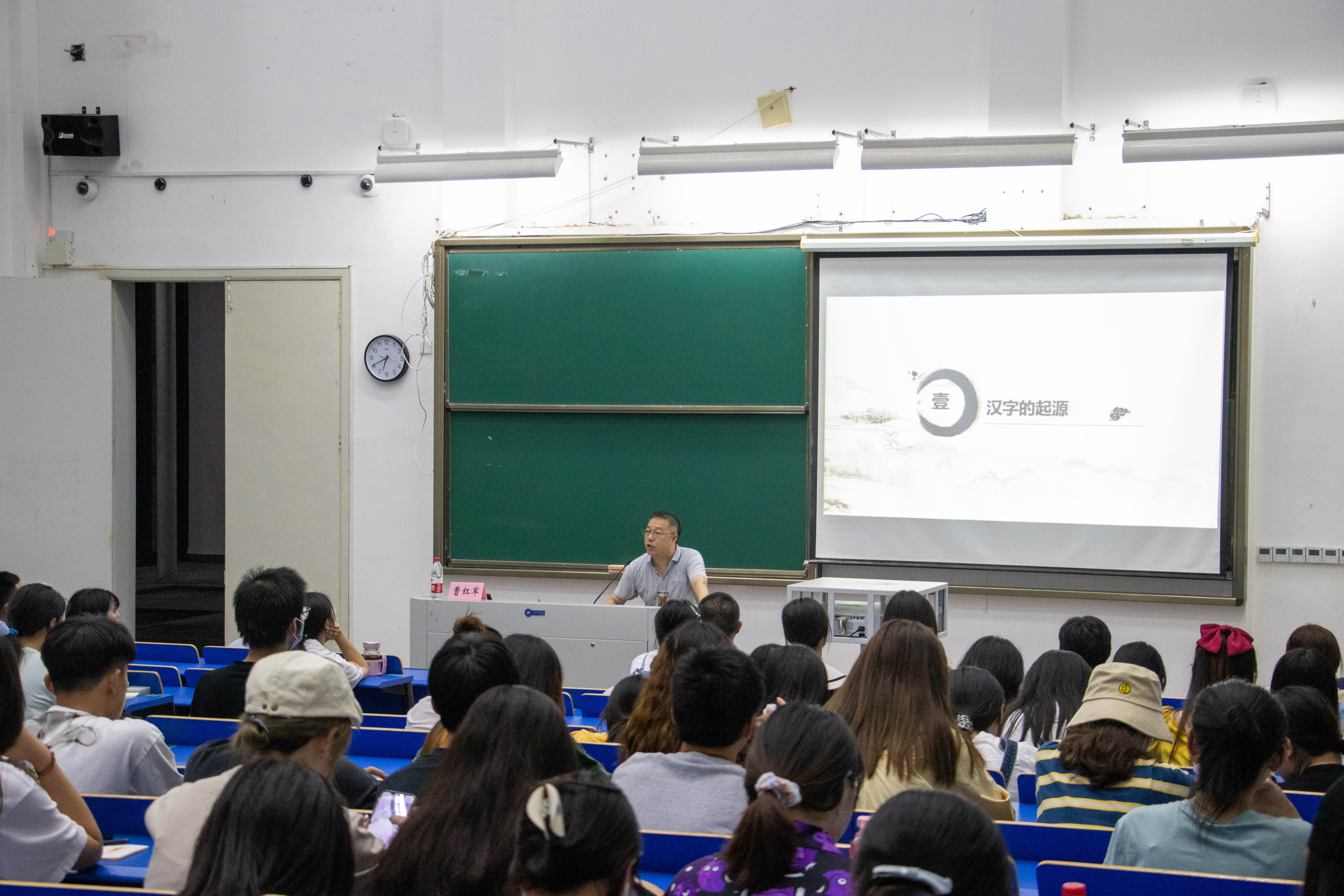 2021年10月8日下午和晚上,yl9193永利集团观澜大讲坛“《说文解字》与汉字文化”讲座先后在定海校区、长峙校区顺利举行。本次讲座由南京师范大学文学院教授、中国历史文献研究会副秘书长曹红军主讲,永利集团官网yl9193永利集团党委书记、副院长杨宁主持,yl9193永利集团院长韩伟表、党委副书记曹虹、中文系主任李学辰、学工办老师和400余名本硕学生参听。这是永利集团官网定海校区首届优质服务月系列活动之一。