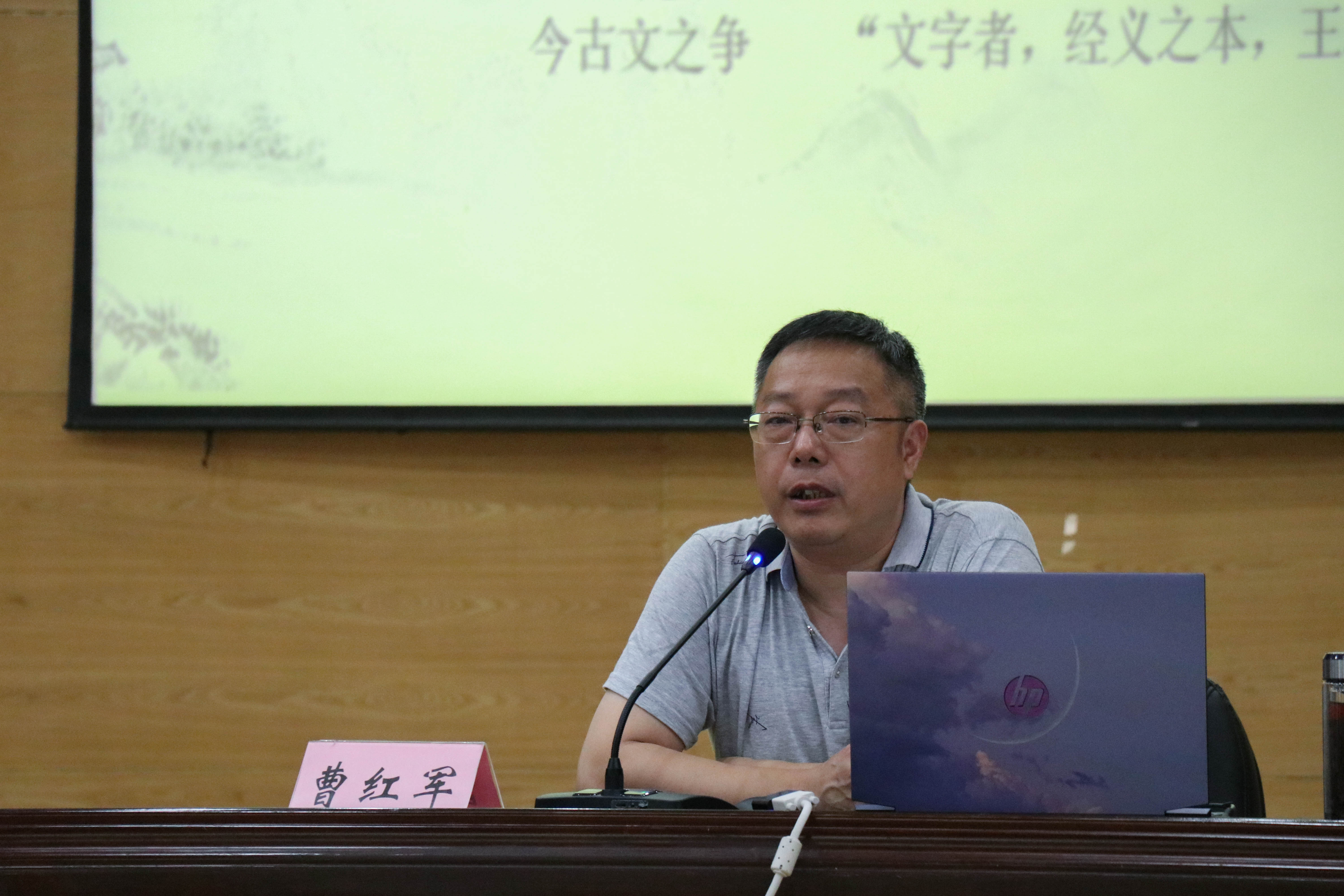 讲座伊始,杨宁书记对曹教授的到来表示热烈的欢迎。杨书记指出,观澜大讲堂的举办,是以提升学生的文化道德素养、充盈学生的内涵水平为目的,而本次讲座以“《说文解字》与汉字文化”为主题,就是要进一步培养同学们对中国汉字文化方面的认知能力。结束前夕,杨宁书记又告诫同学们要在魅力中传承传统文化,在时代中传承传统文化,在创新中传承传统文化。本次讲座顺利举办,让传统文化扎根校园,不仅加深了同学们对中华传统汉字文化的认识,也为师范学院人文环境的建设和专业风采的塑造添砖加瓦。