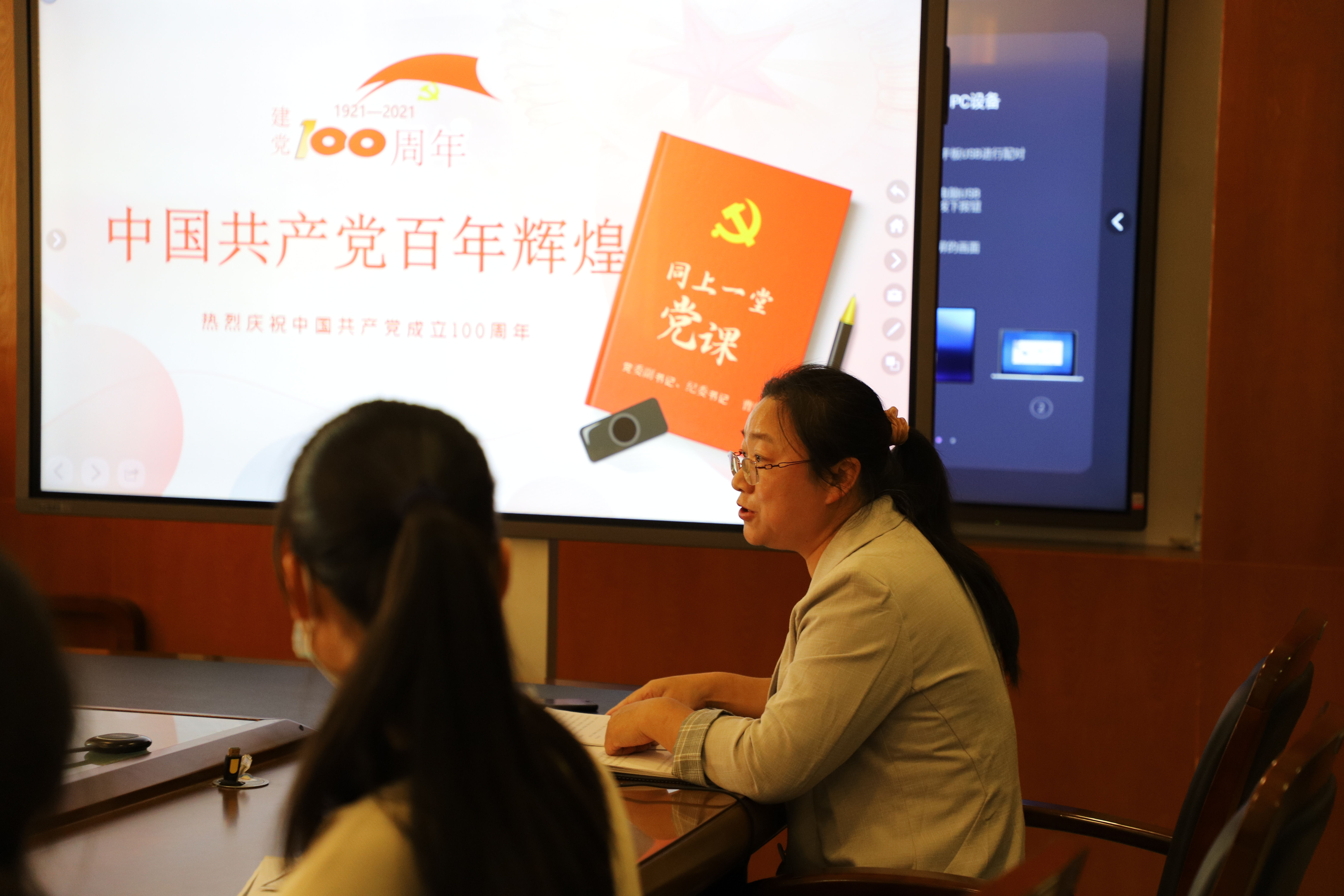 中国共产党历来重视党史学习教育,注重用党的奋斗历程和伟大成就鼓舞斗志、明确方向,以史为镜,中国共产党才能继续走在正确的道路上。会上,党委副书记曹虹带领在座师生党员回顾了中国共产党的百年辉煌。曹书记系统介绍了中国共产党从1921年至2021年的历程,并强调中国共产党的百年是用鲜血、汗水、泪水、勇气写就的百年;是筚路蓝缕、披荆斩棘、砥砺前行的百年;是苦难中铸就辉煌、挫折中毅然奋起、失误后拨乱反正、转折中开天辟地的百年。
