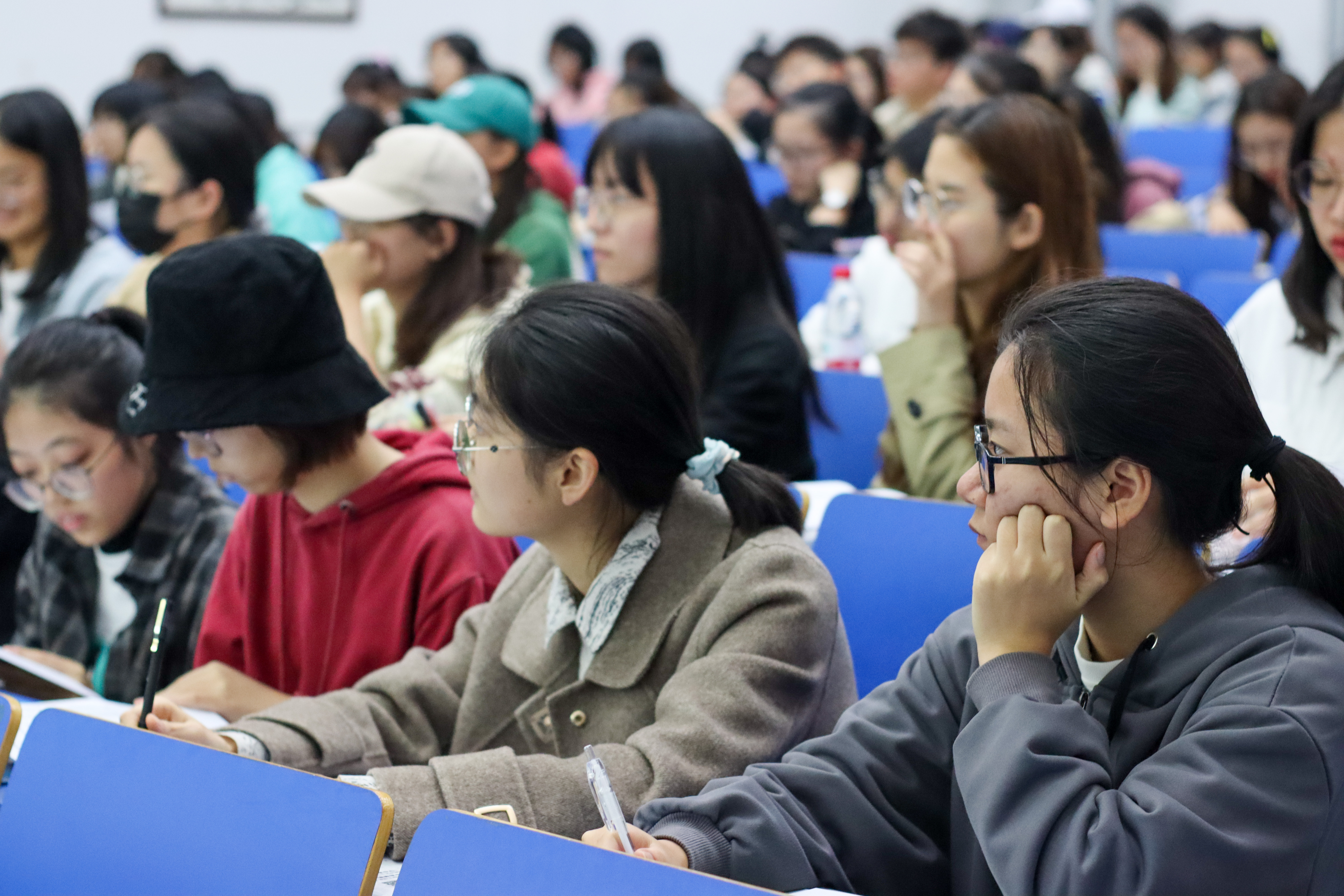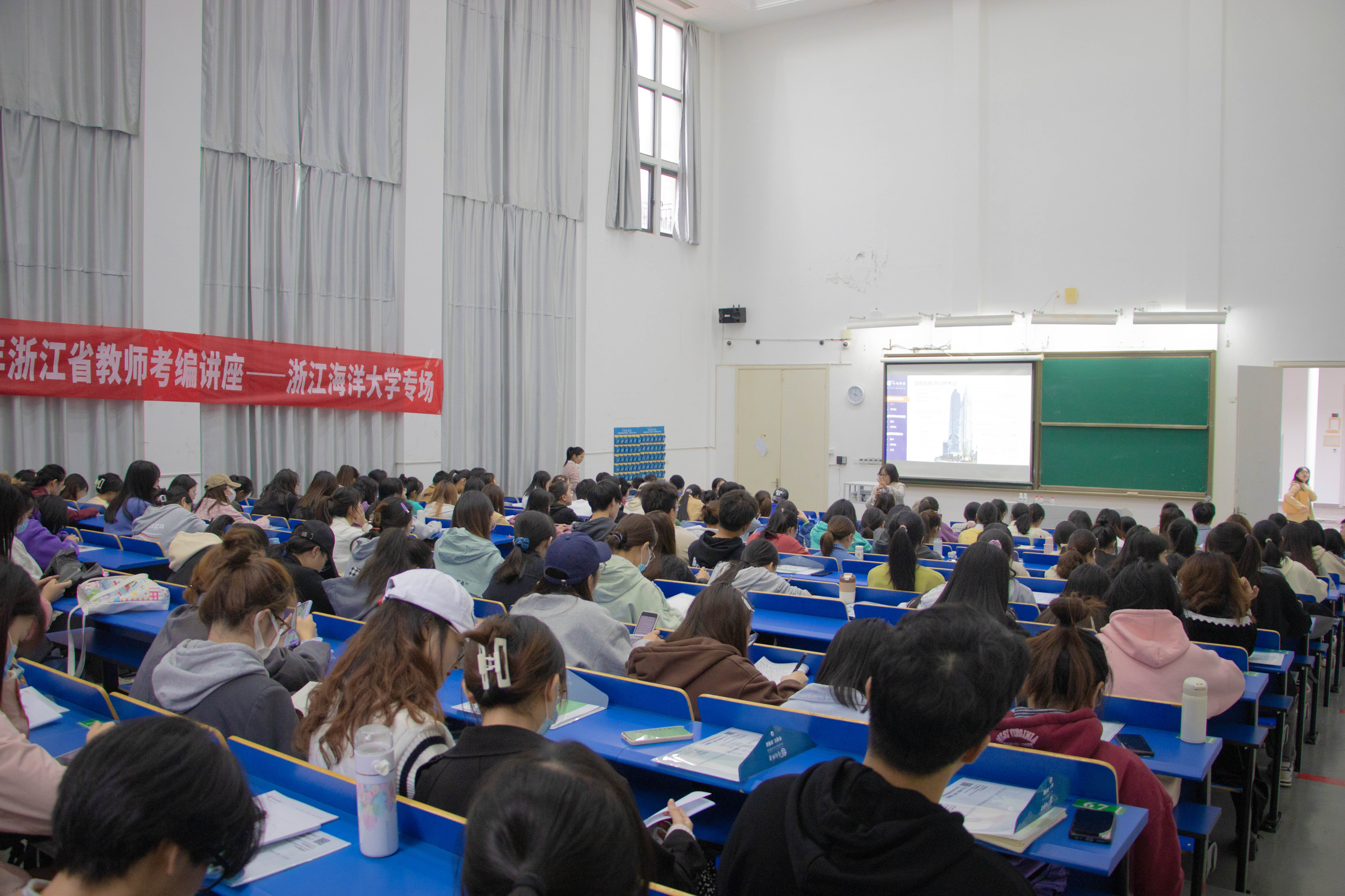 课上,李老师在大致了解学生情况后,从如何准备考编出发,围绕考试组成、招聘类型、报名与竞争形势等内容为大家分析了目前考编所面临的的严峻形势。同时,李老师介绍了近年来教师考编的激烈形势和提前批教师的招聘要求,并对浙江省各地区的报考情况进行分析讲解,让同学们对教师考编有了进一步的了解。此外,李老师还详细阐述了笔试的考试科目、考试范围,面试的流程要求、考核项目等方面,强调了考试中注意事项,帮助同学们明晰考试流程并掌握考试方法。