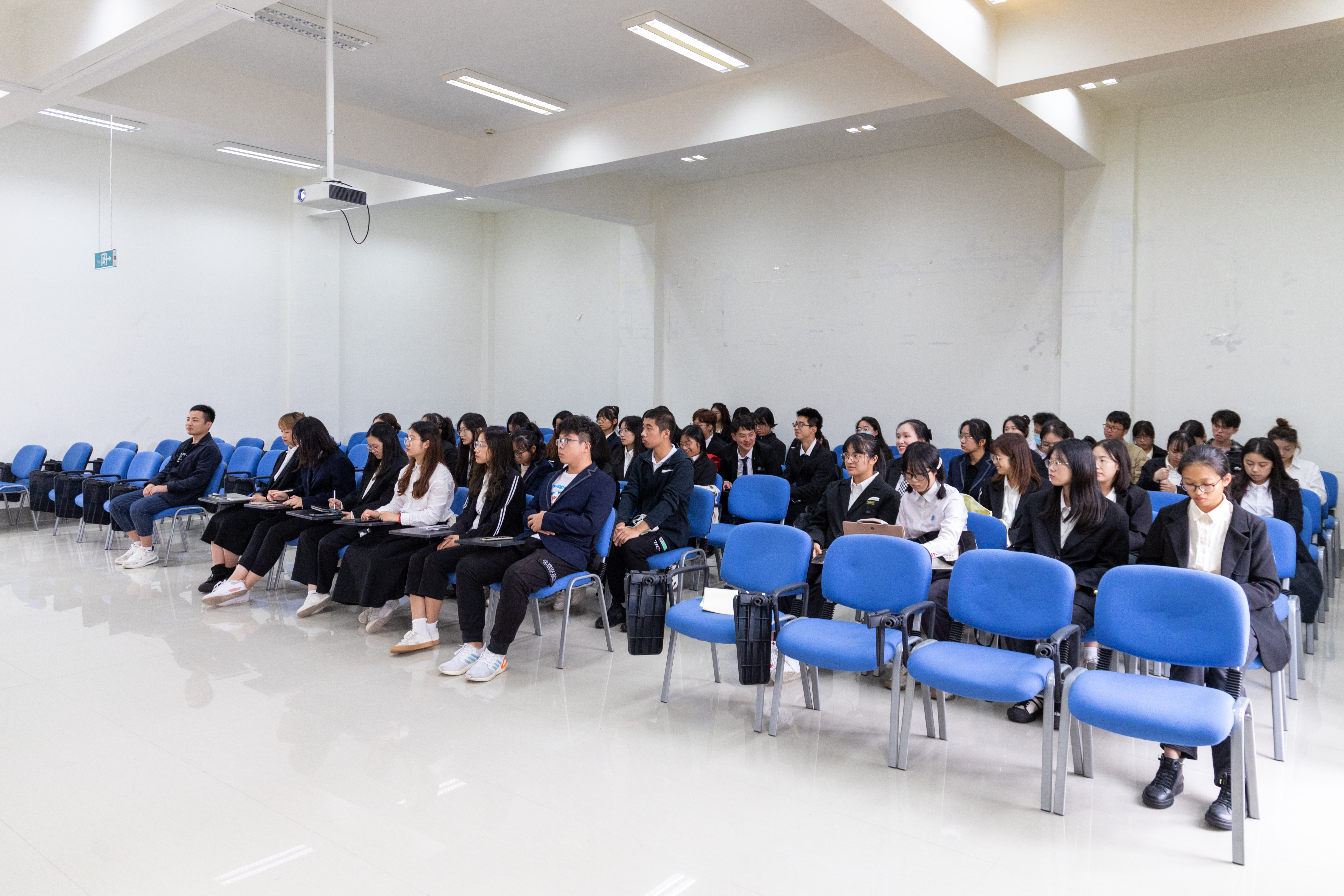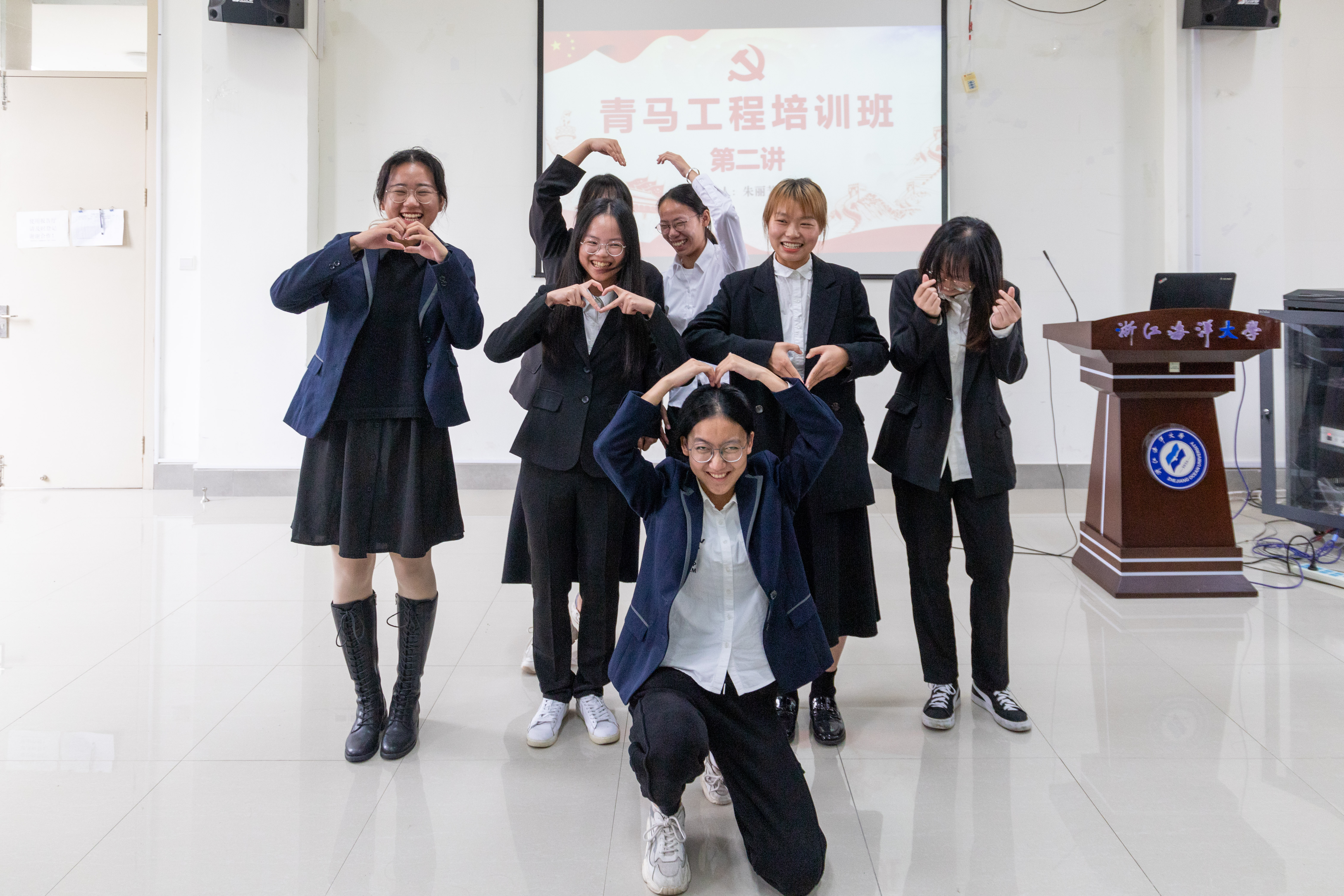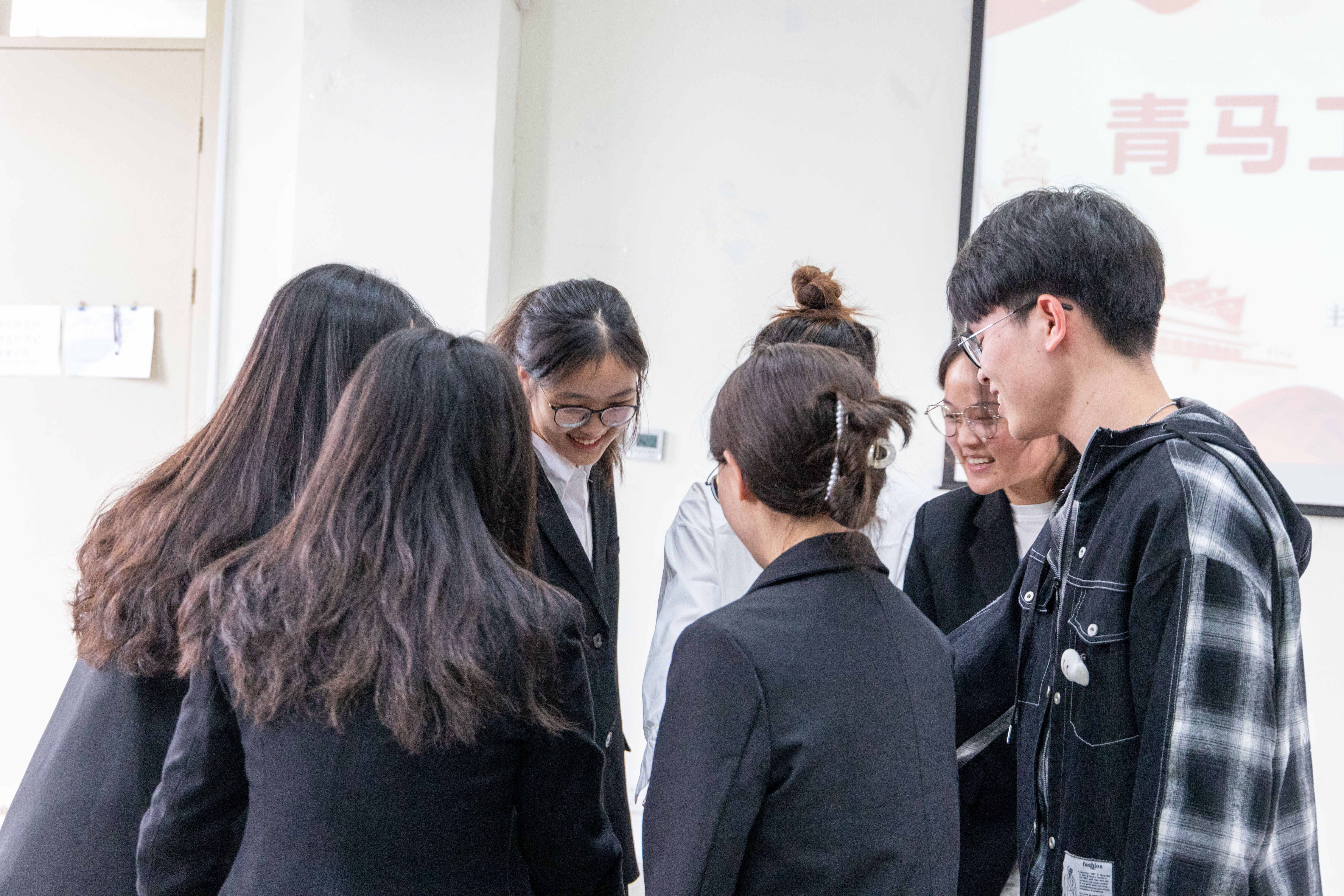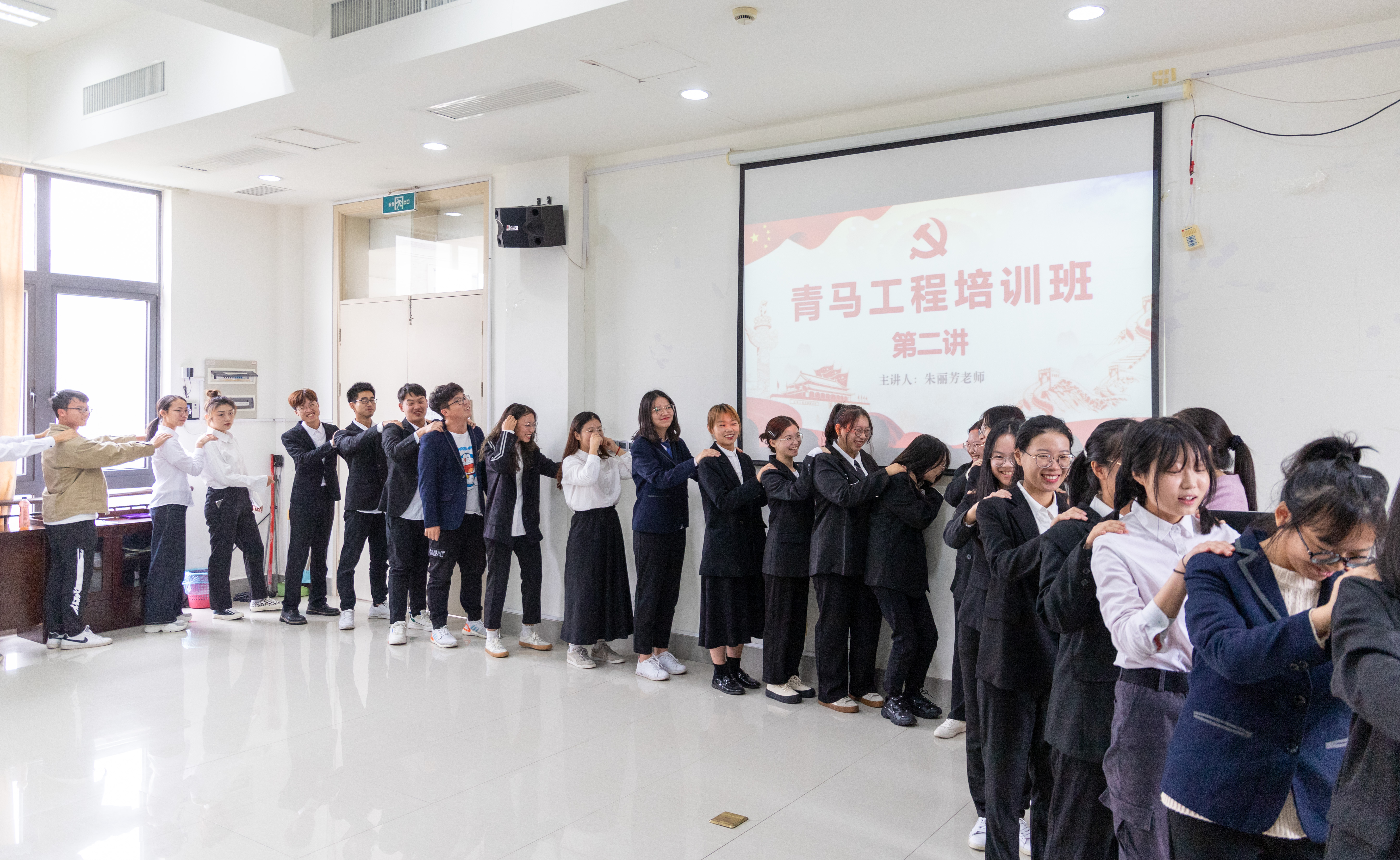 本次讲座以团结位主题,朱老师从“放下,专注,体验,分享”四个词开篇,将同学们引入生动而又富有趣味的心理教学活动当中。朱老师通过按摩放松、讲故事与小组展示等环节与同学们积极互动。同学们随机排列围成一个大圈,根据老师的指令给身边的同学捏肩捶背。通过肢体接触,同学们迅速拉近了距离。讲故事环节中,朱老师分享了一个苏东坡与竹的故事,要求同学们一听到“竹”这个字眼就做出相应动作,失败的同学进行才艺展示。紧接着,同学们随机七人进行组队,一起思考队名、口号、队形,并一一上台展示。同学们积极参与,活动现场氛围和谐融洽。参加活动的学生干部纷纷表示,本次活动形式新颖,同学们在游戏中增进了感情,增强了凝聚力。