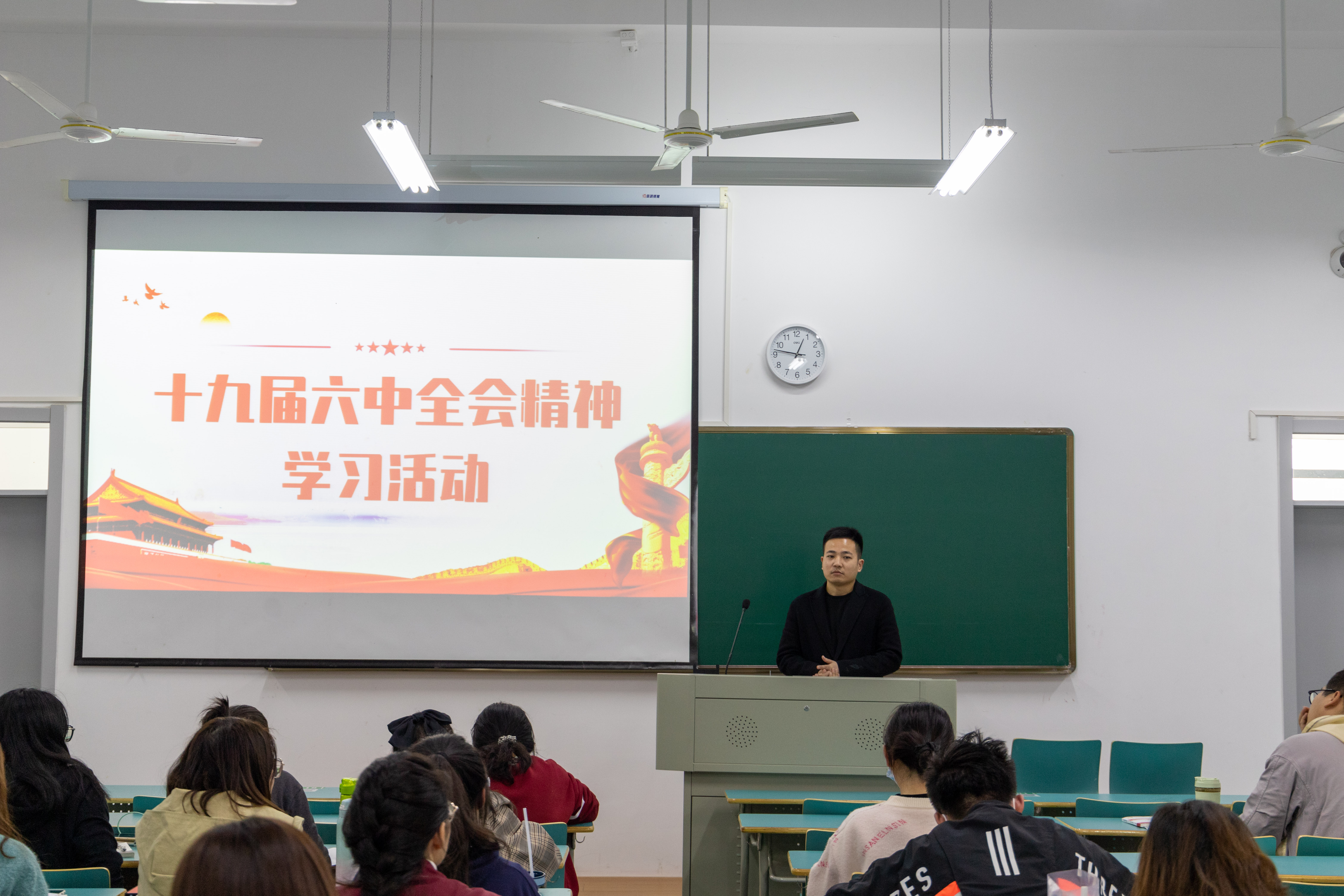 为深入学习贯彻党的十九届六中全会精神,2021年11月17日中午十二点,yl9193永利集团党的十九届六中全会精神学习会于长峙校区新教学楼B102顺利举行。辅导员张军老师和76名入党积极分子参与本次活动。现场师生收看了中共中央举行的介绍党的十九届六中全会精神新闻发布会。