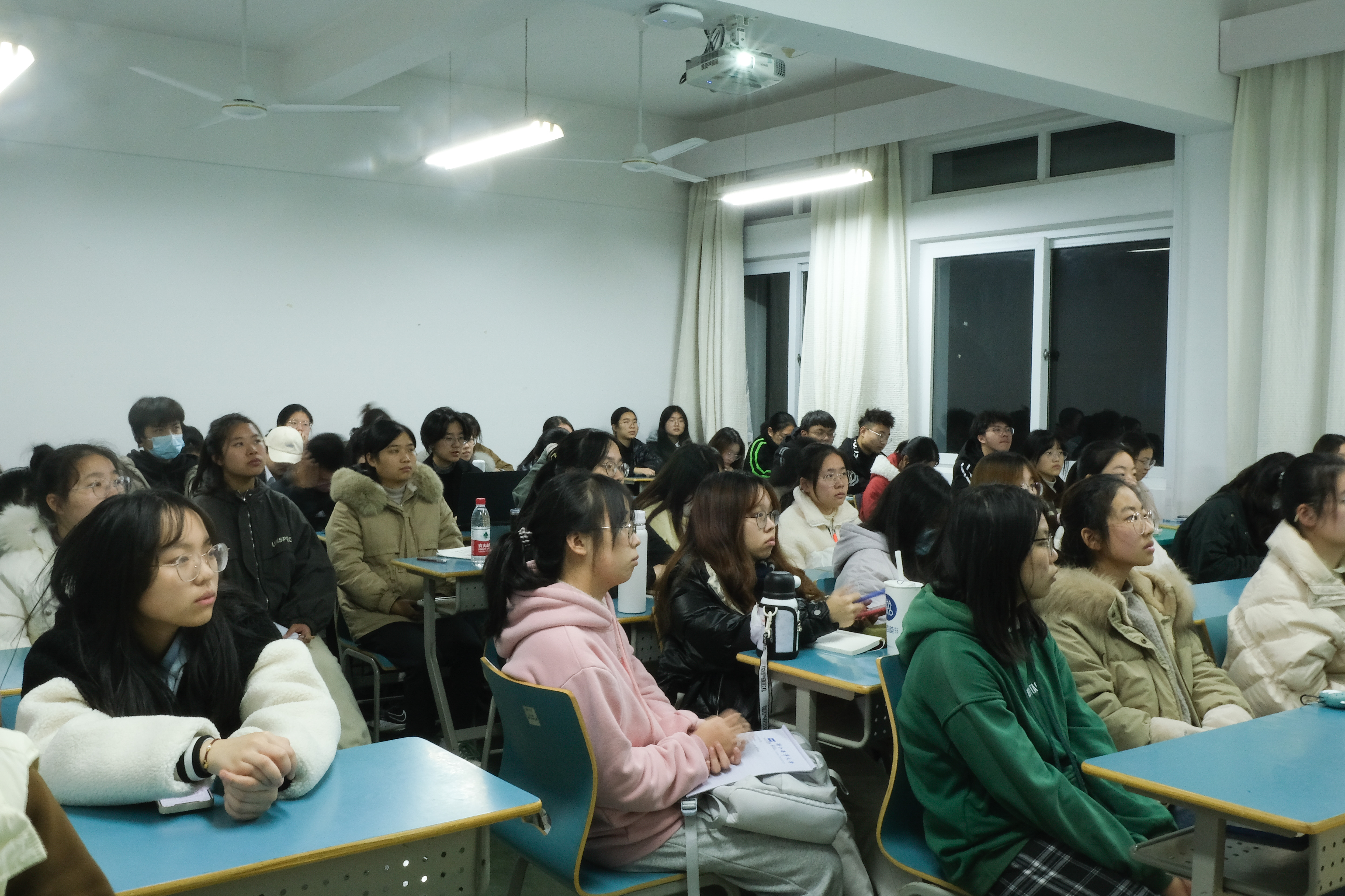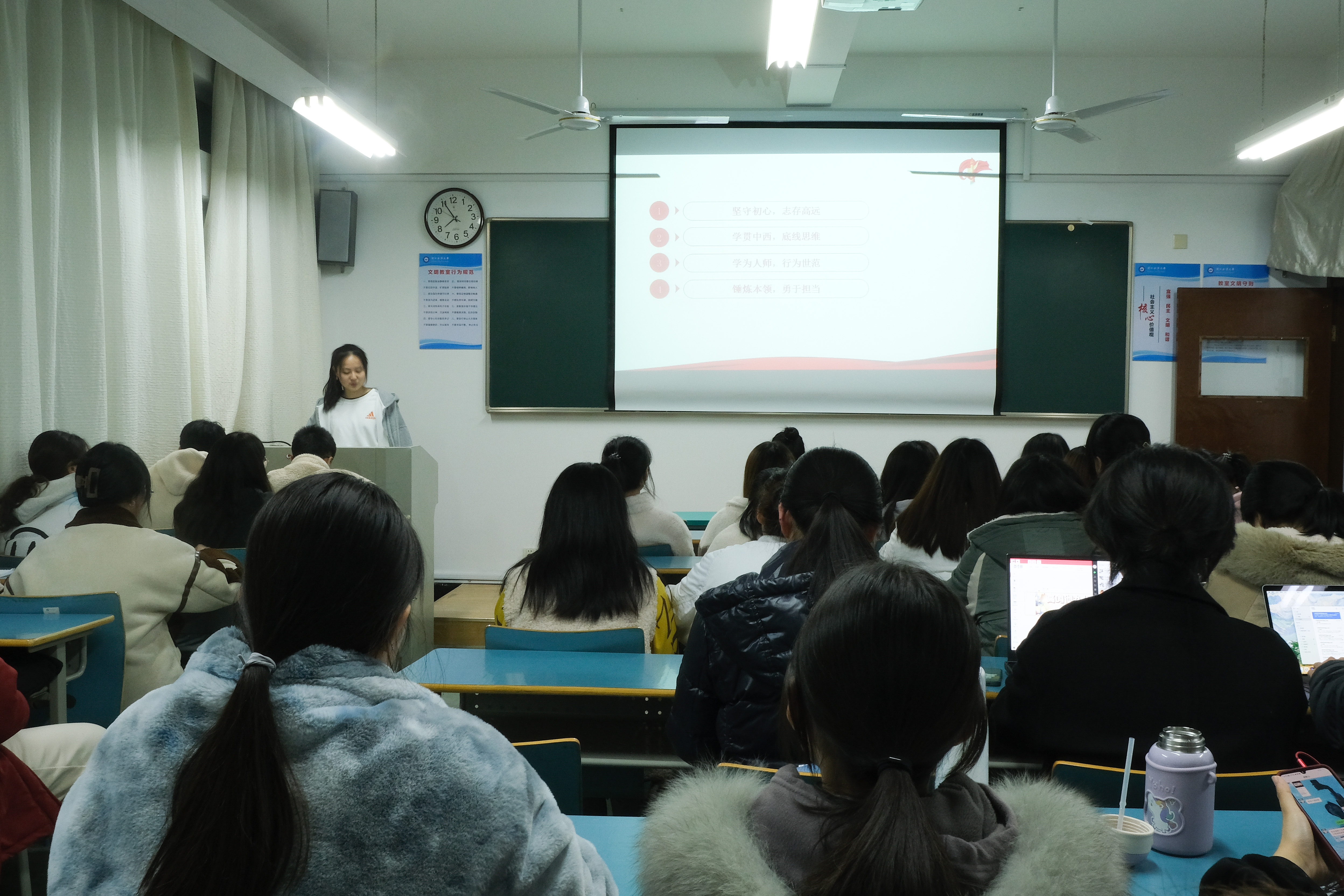 外国语学院柴金燕老师以《十九届六中全会内容和精神解读》为主题,从十九届六中全会的精神要义层面切入,重点为同学们解读了以习近平同志为代表的新时代中国共产党人的历史使命、主动精神和政治智慧。柴老师指出要深入学习领会党的十九届六中全会精神,从党的百年奋斗辉煌成就中坚定理想信念,从党的百年奋斗伟大意义中感悟初心使命,从党的百年历史经验中汲取奋进力量。最后,柴老师对同学们提出了殷切期望,她希望当代大学生能够真正将十九届六中全会精神贯彻到学习和生活当中,珍惜时光,发奋图强,开拓创新,成为坚守初心、志存高远,学贯中西、底线思维,学为人师、行为世范,锤炼本领、勇于担当的时代新人。
