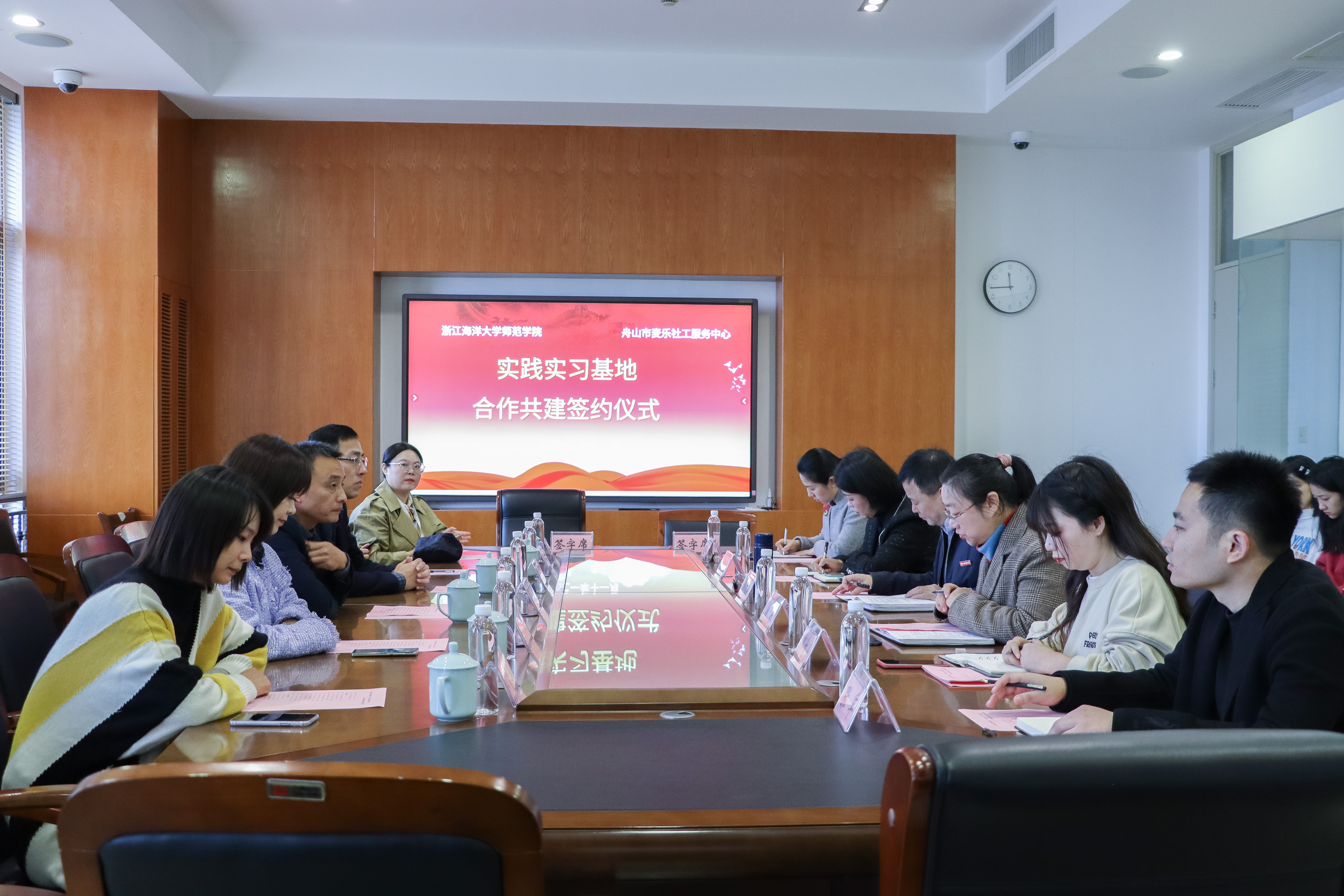 2021年11月18日,yl9193永利集团与舟山市麦乐社工服务中心实践实习基地合作共建签约仪式于永利集团官网文理楼418会议室顺利举行。舟山市民政局党组成员、副局长毛海东,舟山市民政局社工处处长王征宇,舟山市麦乐社工服务中心理事长林静、社工站主管高迎红、社工项目部主管裴莹、社工项目督导邵夏莹,yl9193永利集团院长、党委副书记韩伟表,yl9193永利集团党委副书记、纪委书记曹虹,学院办公室、学工办、教学办人员以及部分本科生、研究生代表共同参加本次仪式。本次签约仪式由yl9193永利集团党委副书记、纪委书记曹虹主持。