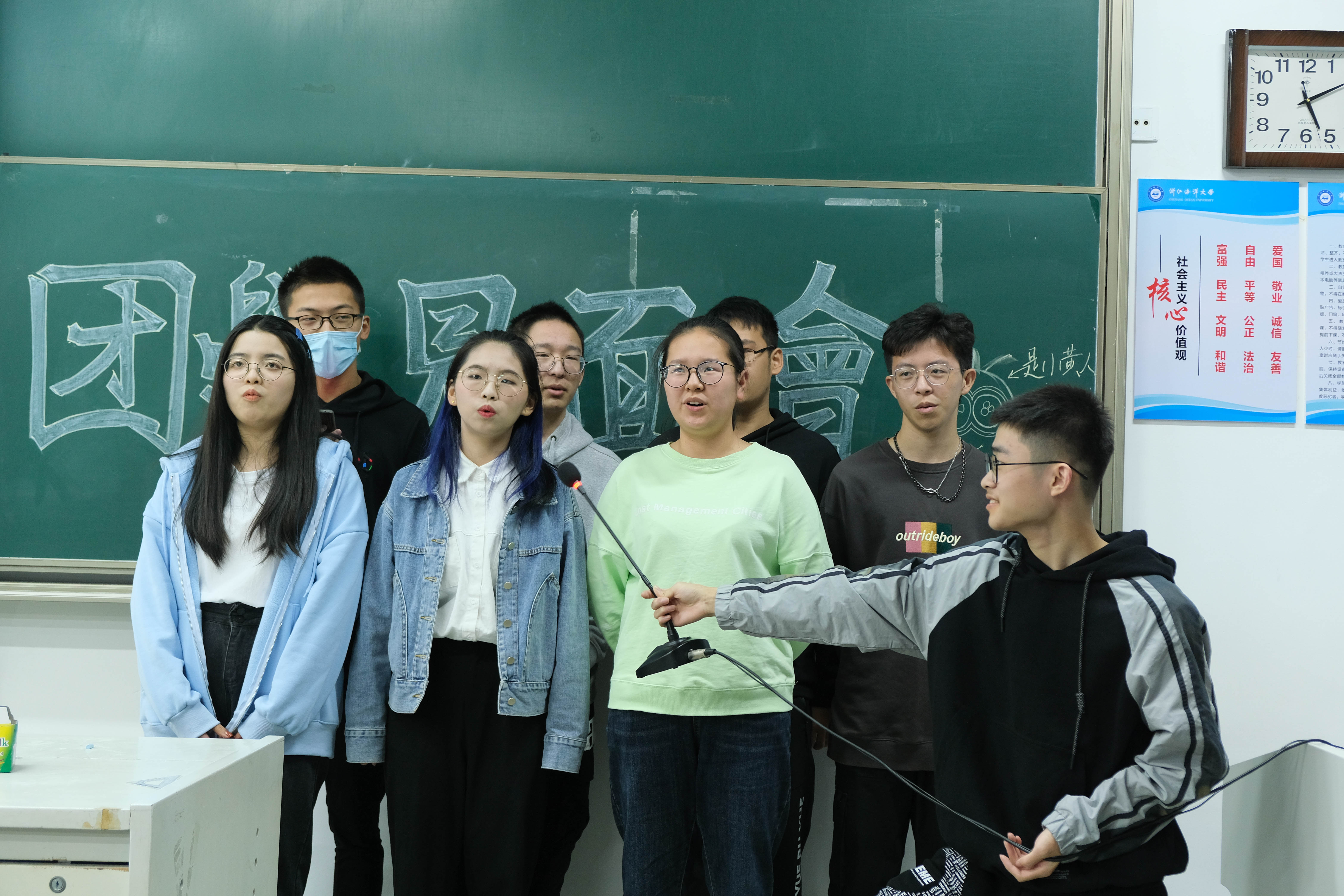 为了帮助各部门干事更快地融入团学大家庭,适应团学新的角色,增加各部门的交流与了解,2021年10月23日晚,yl9193永利集团2021年度团学见面会于定海校区教学楼151室顺利举办,本次活动由林佳唯和王康杰主持,yl9193永利集团团委、学生会全体学生干部与各部门干事参加。