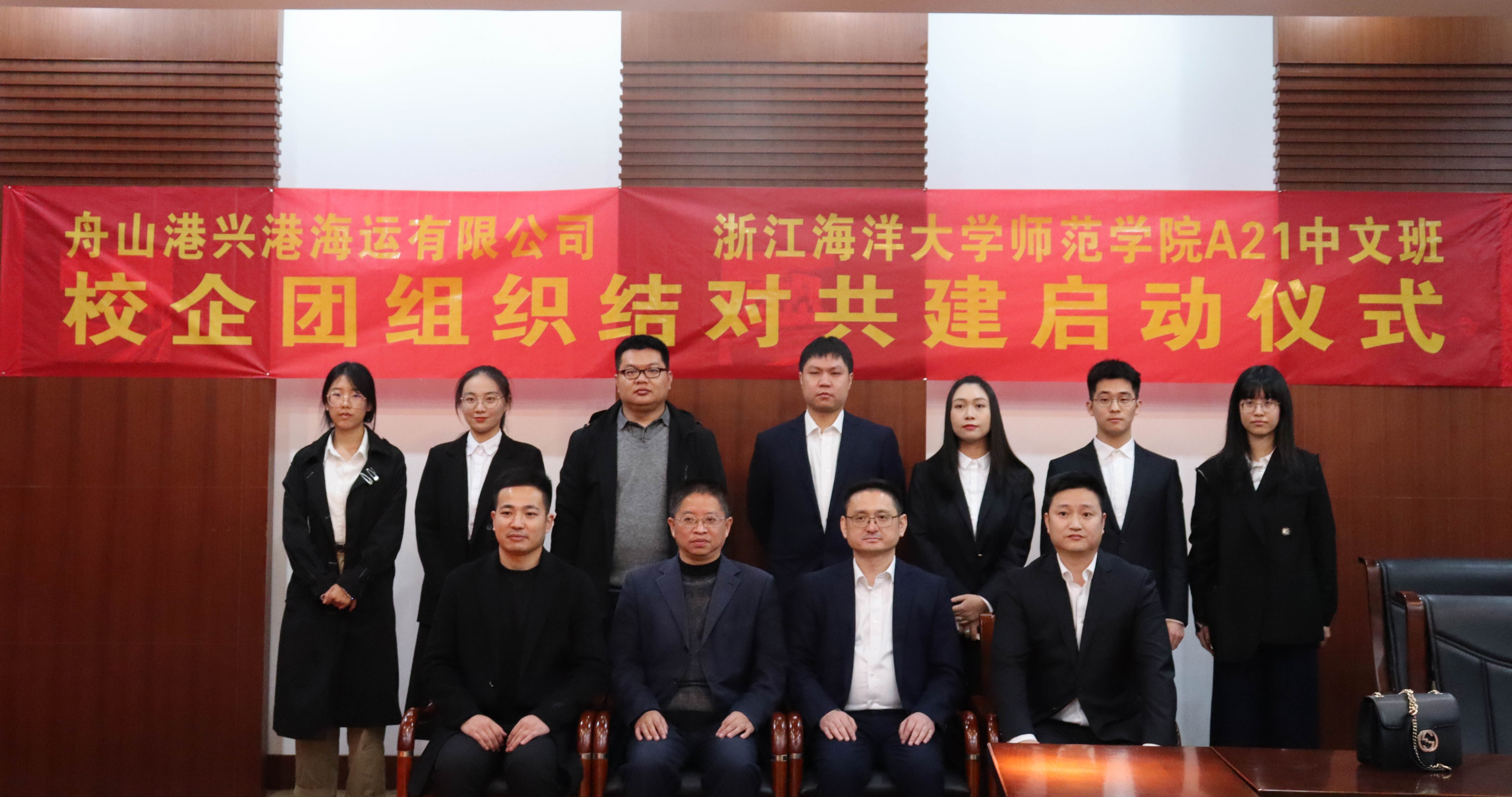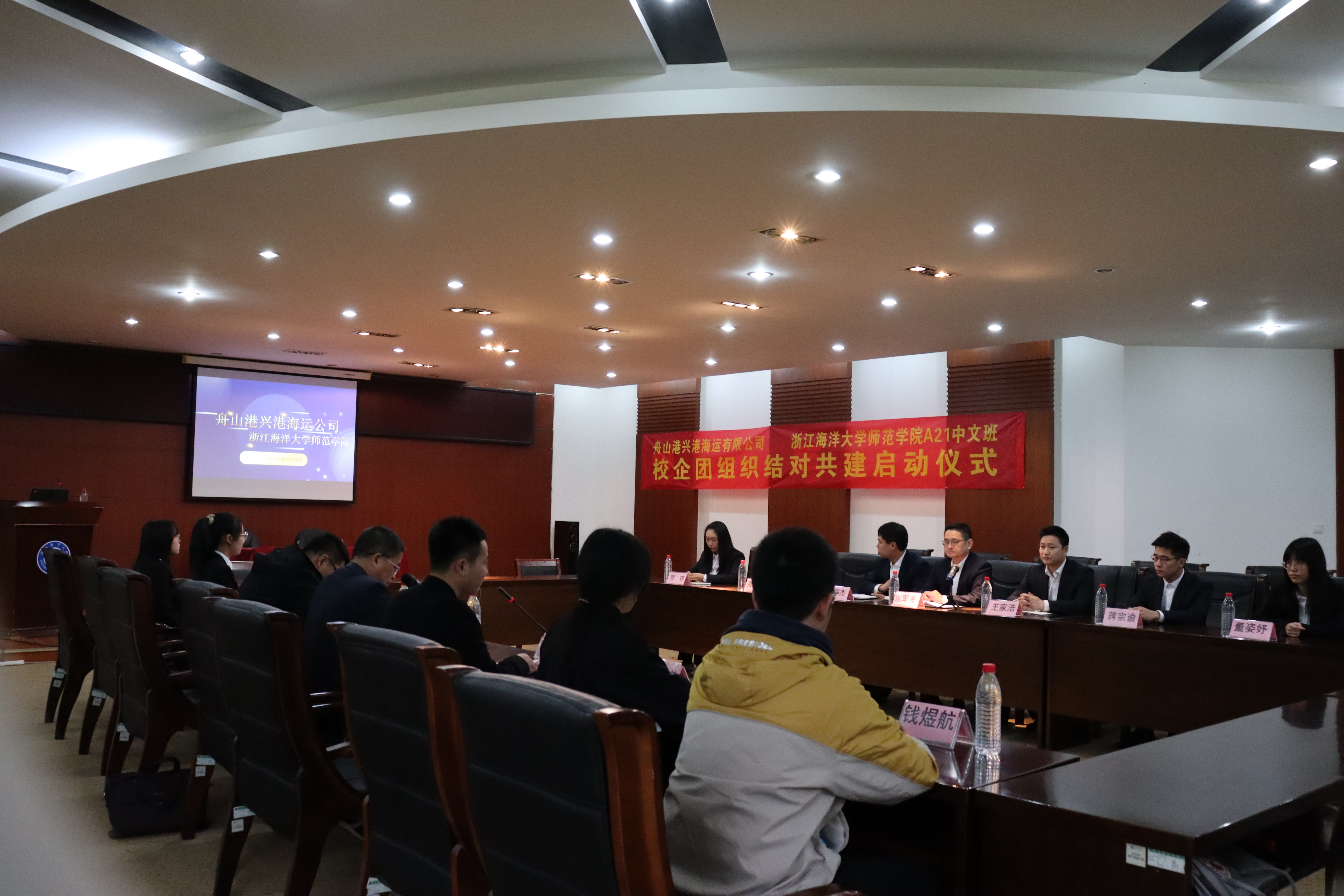为探索创新基层团组织建设工作载体,提升团组织建设水平,2021年11月17日下午,舟山港兴港海运有限公司与yl9193永利集团校企团组织结对共建启动仪式在定海校区学生活动中心顺利举行。舟山港兴港海运公司党支部书记、副总经理、工会主席沈军海,党群工作部负责人姚柳杰,团支部书记王家浩,浙海大yl9193永利集团党委书记、副院长杨宁,辅导员张军,A21中文班主任苏凯和全体同学参加仪式。会议由张军老师主持。