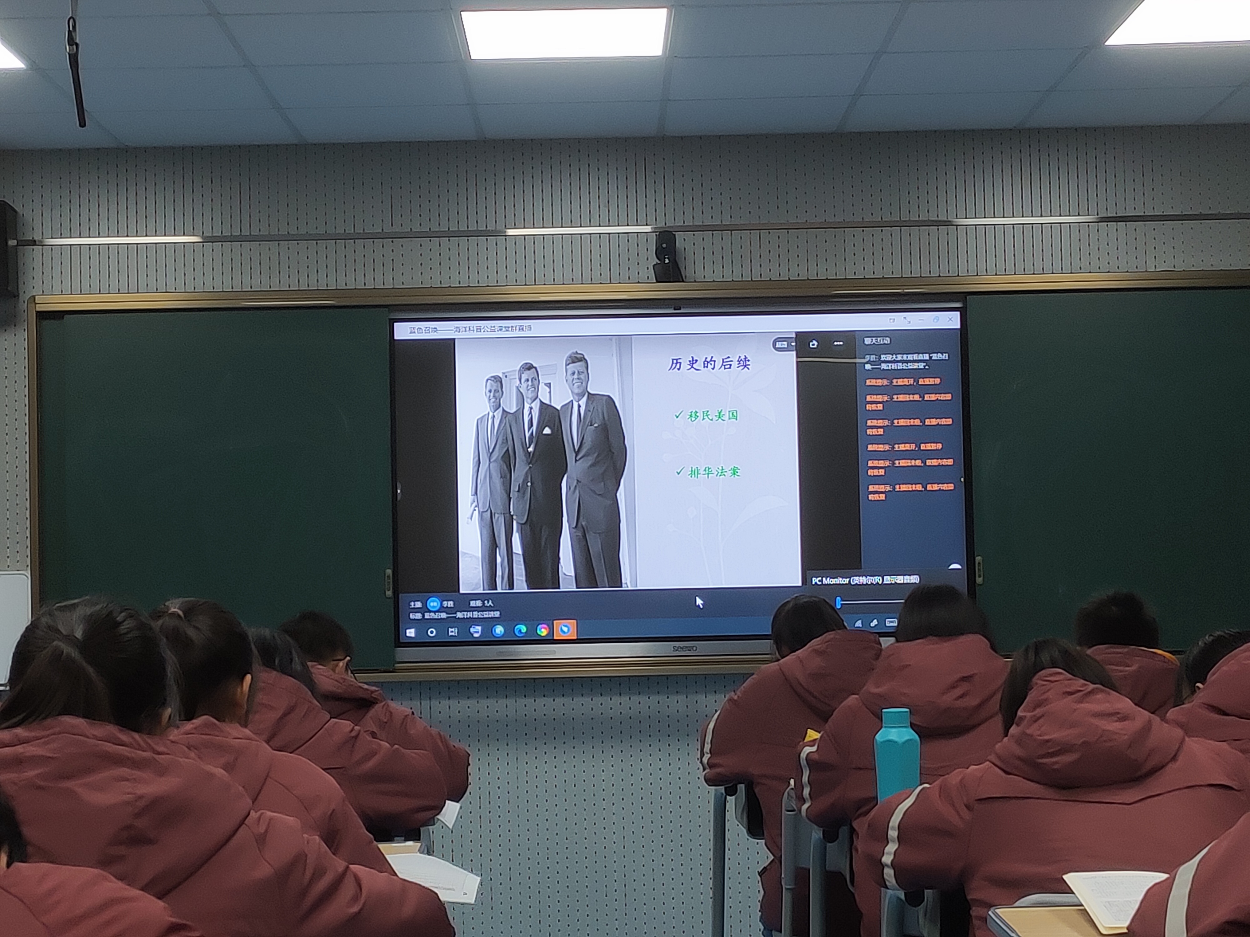 李胜老师以“‘哥伦布大交换’的历史意义”为主题,由点到面,深入浅出,从何为“哥伦布大交换”、“哥伦布大交换”的具体内涵、“哥伦布大交换”的世界意义等三个方面生动形象地向同学们阐述了海洋在近现代世界历史发展过程中的重要意义。李胜老师指出,“哥伦布大交换”于1492年开始,以海洋作为媒介,是通过动物、植物、人种、细菌、文化等途径传播的一场不平等交换。“哥伦布大交换”不仅促进了当时世界各地物质和文化的交流,而且也对欧洲人移民美国、排华法案推出等后续事件的发生产生了重要影响。在一个半小时的课堂里,李胜老师结合历史书籍资料,用通俗易懂、幽默风趣的语言介绍了“哥伦布大交换”与明代中国之间的关系以及相关海洋文化知识,将深奥的问题浅显化,激发了同学们的好奇心和求知欲,线上互动频繁。
