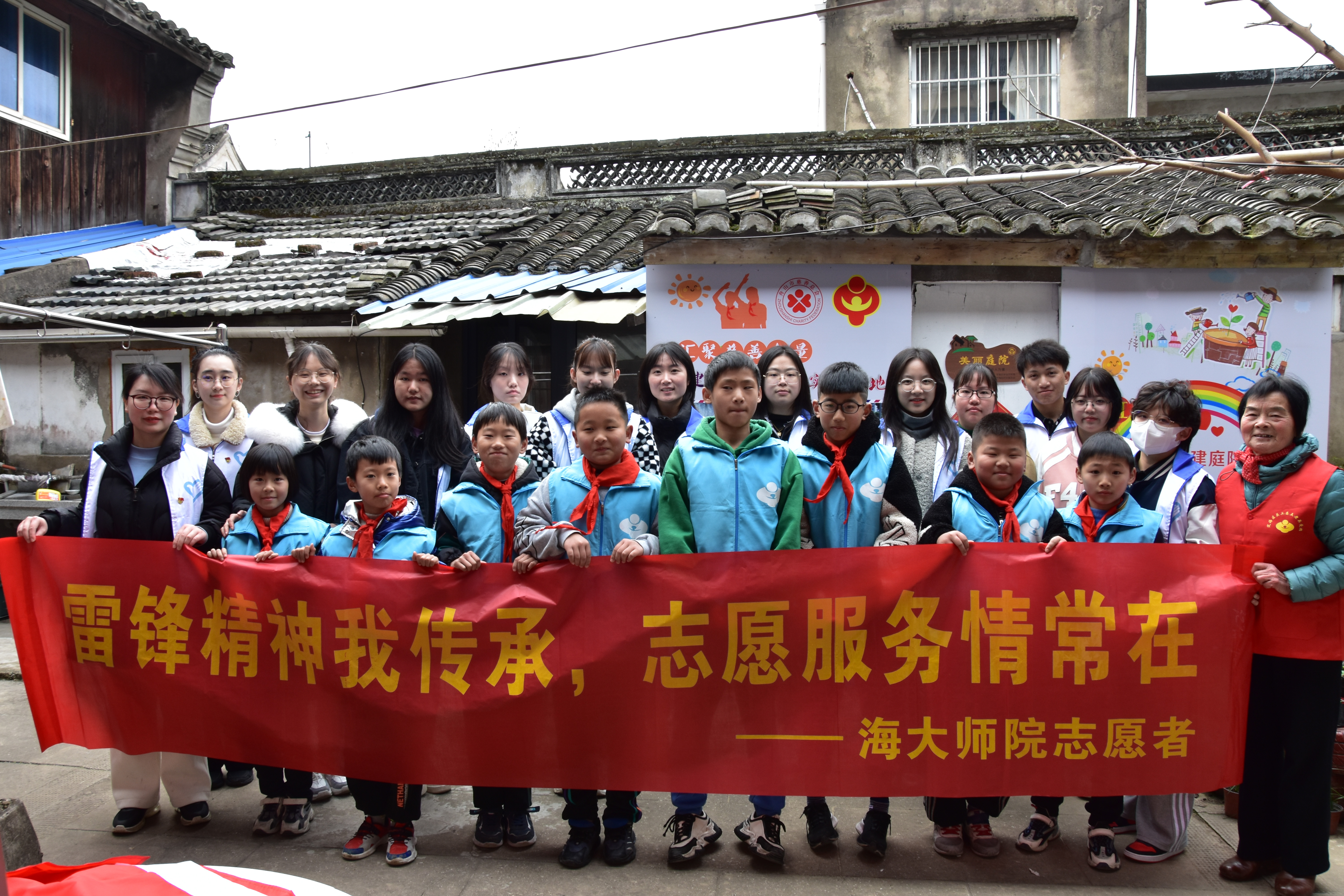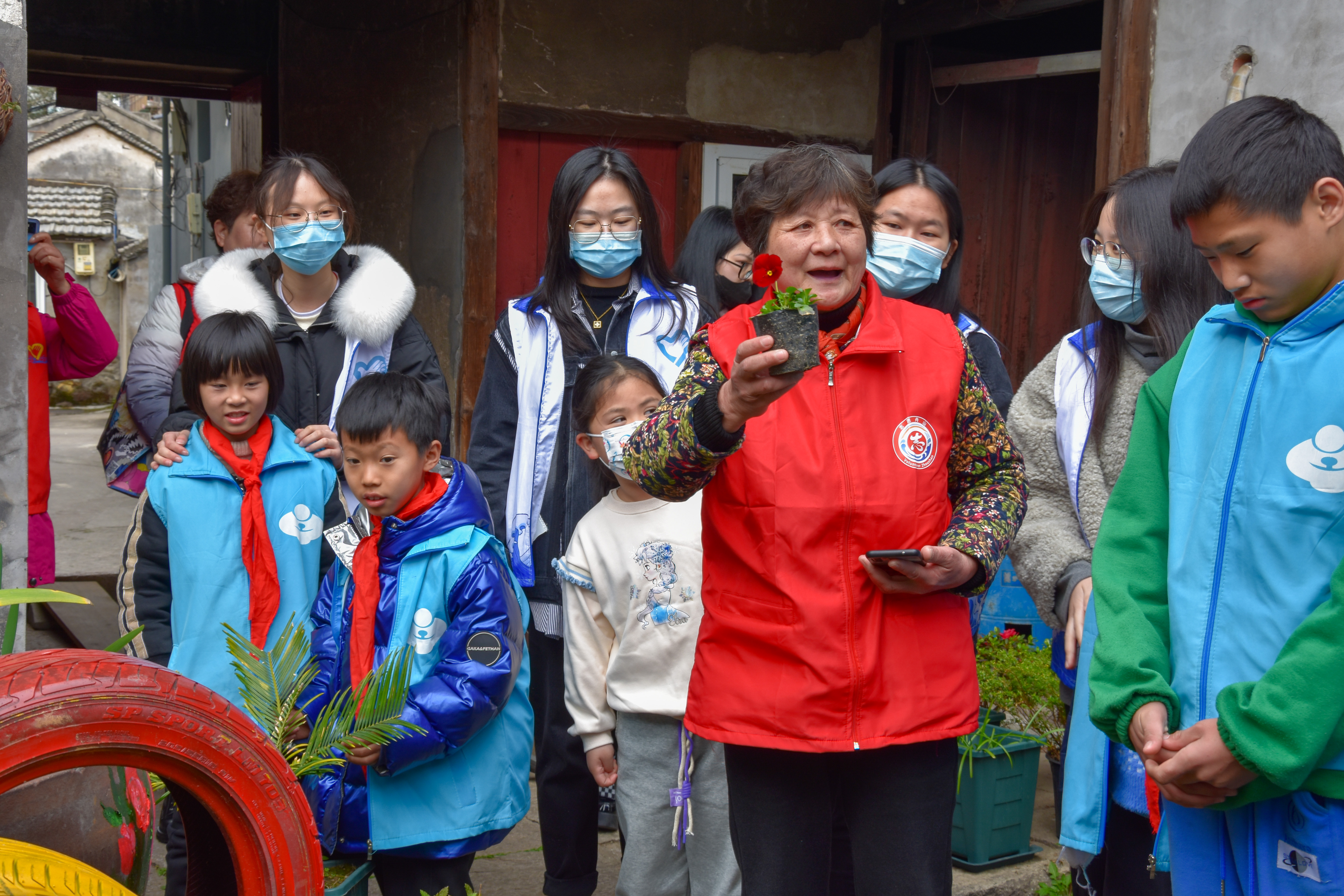 3月6日上午,18名志愿者前往环南街道,同全国最美志愿者郭玲娣奶奶一起,带领定海育才小学、明珠小学、海润学校的新居民子女10余人于定海区环城西路开展“学习雷锋,乐于劳动”活动,与小朋友们分享好人好事、同唱《学习雷锋好榜样》、栽培花卉、装饰庭院。