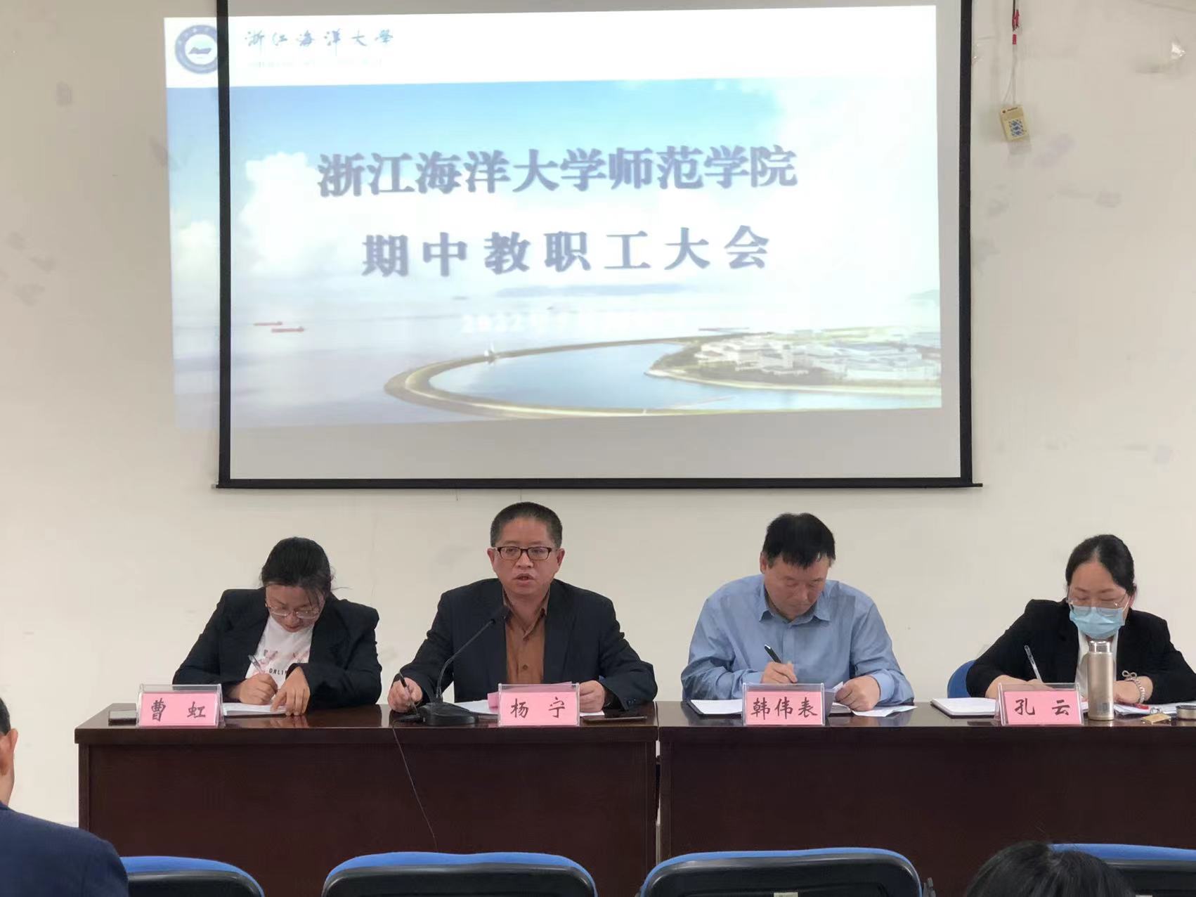 韩伟表院长对学院上半学期的人才培养工作、师资队伍建设现状进行了通报,向与会教职工介绍了教师挂职锻炼、与舟山教育学院共建教授博士工作站等落实舟山市教育事业“十四五”规划的具体措施,进一步彰显大学服务社会的功能,同时对共建丝路学院的进展进行了介绍,对教学、科研重点工作进行了再布置,并就两校区办学事宜进行了说明。韩院长还通报了教育部公开曝光的第九批7起违反教师职业行为十项准则典型案例,警醒在座教职工以身作则发挥示范榜样作用。