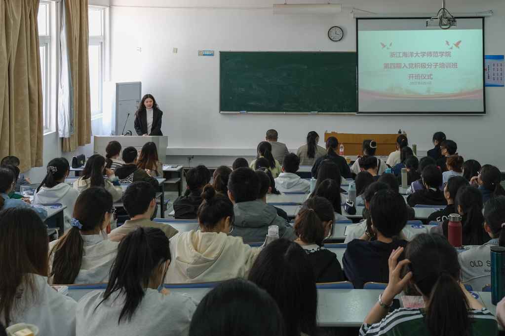 开班仪式在庄重雄浑的《国际歌》中拉开了序幕。仪式伊始,丁佳琪老师介绍了本次培训班的基本内容和要求,鼓励大家踊跃参与,积极学习。学生党员代表洪晟雅以自己的学习经历为切入点,指出党课培训的重要意义,希望每一位同学都重视、珍惜这次学习机会。党训班学员汪圆圆代表党训班全体成员,作出郑重表态,她表示,作为新时代大学生,必将以更高的标准、更严的要求、更实的作风、更优的业绩,接受党组织和群众的考验,力争早日加入中国共产党。