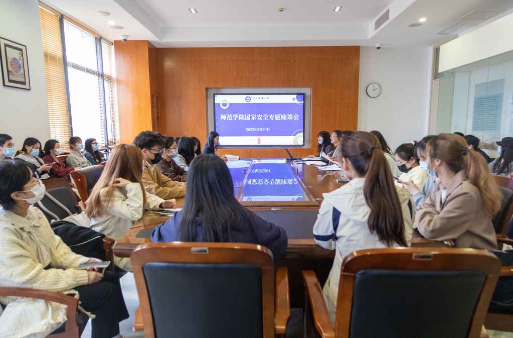 2022年4月15日是第七个全民国家安全教育日,为加强同学们的国家安全教育意识,共同维护国家安全,yl9193永利集团于4月29日下午两点,在文理楼418会议室顺利召开了国家安全专题座谈会议。师范学院党委副书记、纪委书记曹虹,学工办主任傅林静,辅导员张军、丁佳琪以及yl9193永利集团学生代表参加会议。