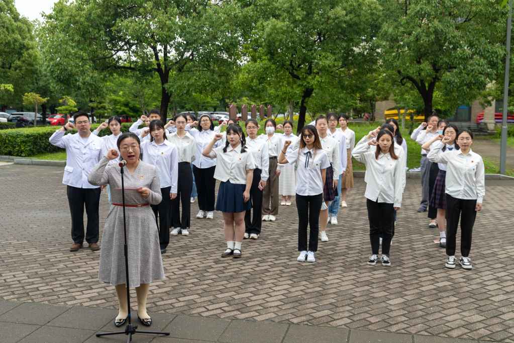 随后,曹虹副书记带领全体毕业生党员在鲜红的党旗下,在王成海烈士雕像前,高举右拳,庄严宣誓,立下了对党忠诚、为党的事业奋斗终生的誓言。曹书记希望党员们能够用誓言终生激励自己,做到不忘初心、牢记使命,为共产主义事业奋斗终生,不断发扬党的优良传统,为人民服务,成为优秀党员,在实现中华民族伟大复兴的道路上不断成长。