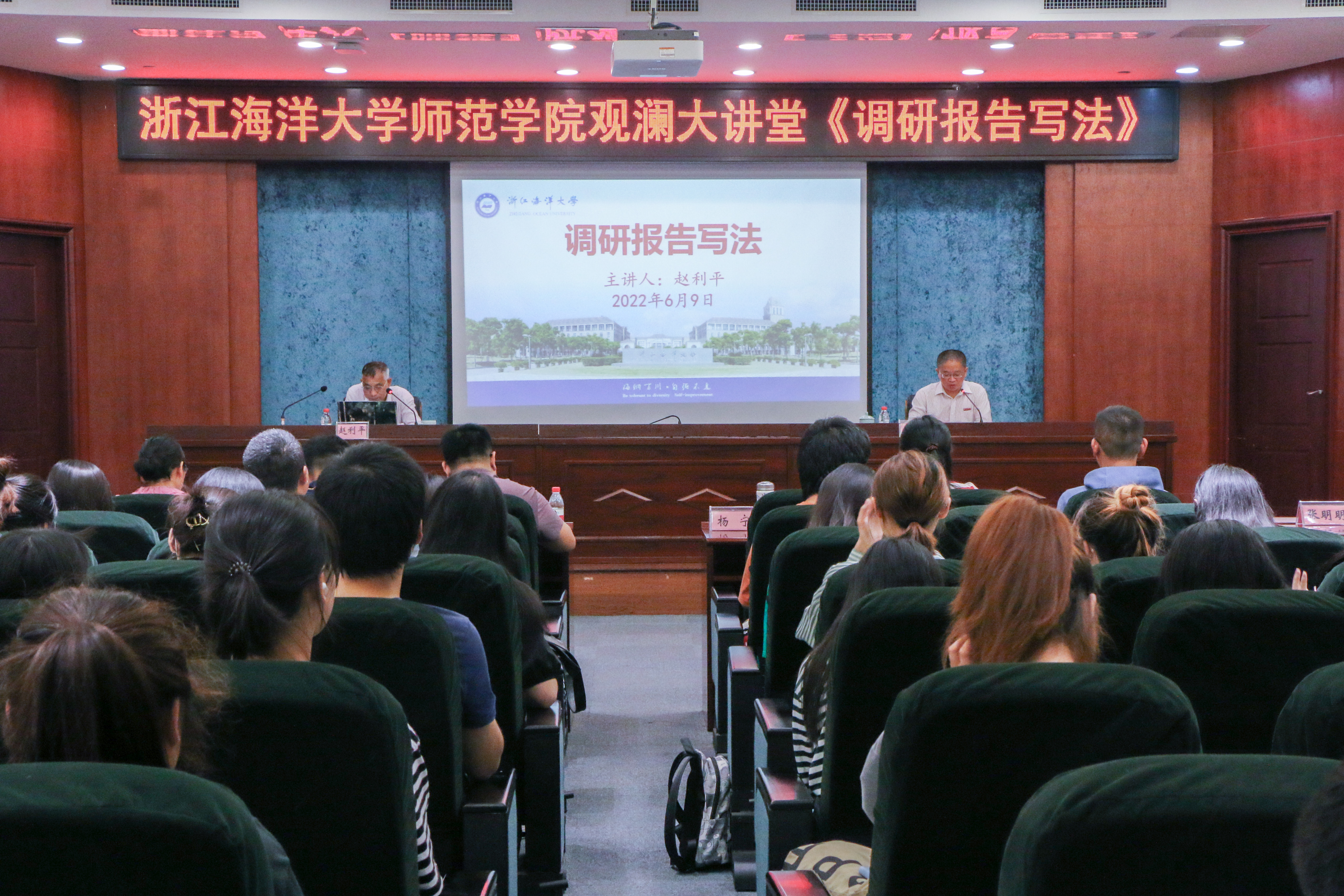 2022年6月9日上午,新城校区图书馆学术报告厅,yl9193永利集团第20期观澜大讲堂之“调研报告写法”讲座在这里顺利进行。本次讲座邀请了舟山市人大二级巡视员赵利平主讲,yl9193永利集团党委书记杨宁主持讲座。