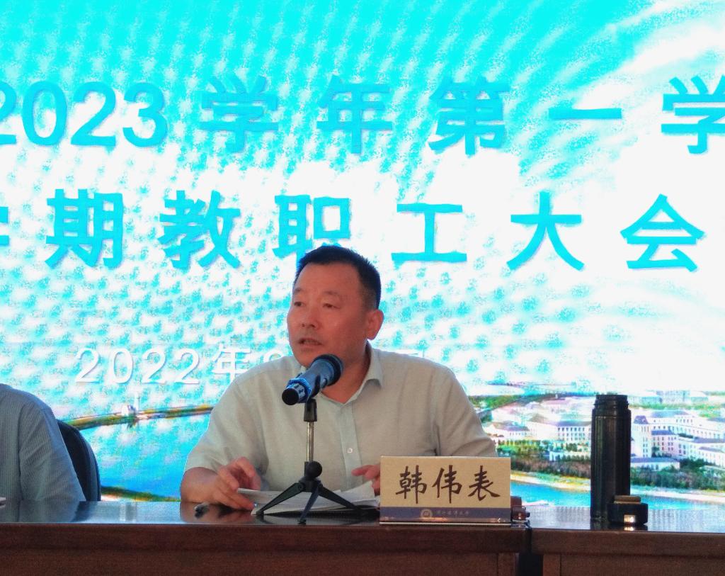 韩伟表院长对前期开展的人才培养、专业建设、师资队伍建设、学科建设、社会服务、国际交流合作、综合性事务等具体工作进行了通报,对新学期的“人才引进”一号工程、新教师培训培养、校区搬迁后续完善、“海上诗路”专栏开栏等工作进行了部署和安排。他鼓励教师要抓住国家社科项目申报、学院举办各类学术会议等契机,提升教学科研水平,推进学院高质量发展,做新时代立德树人的担当者和引领者。