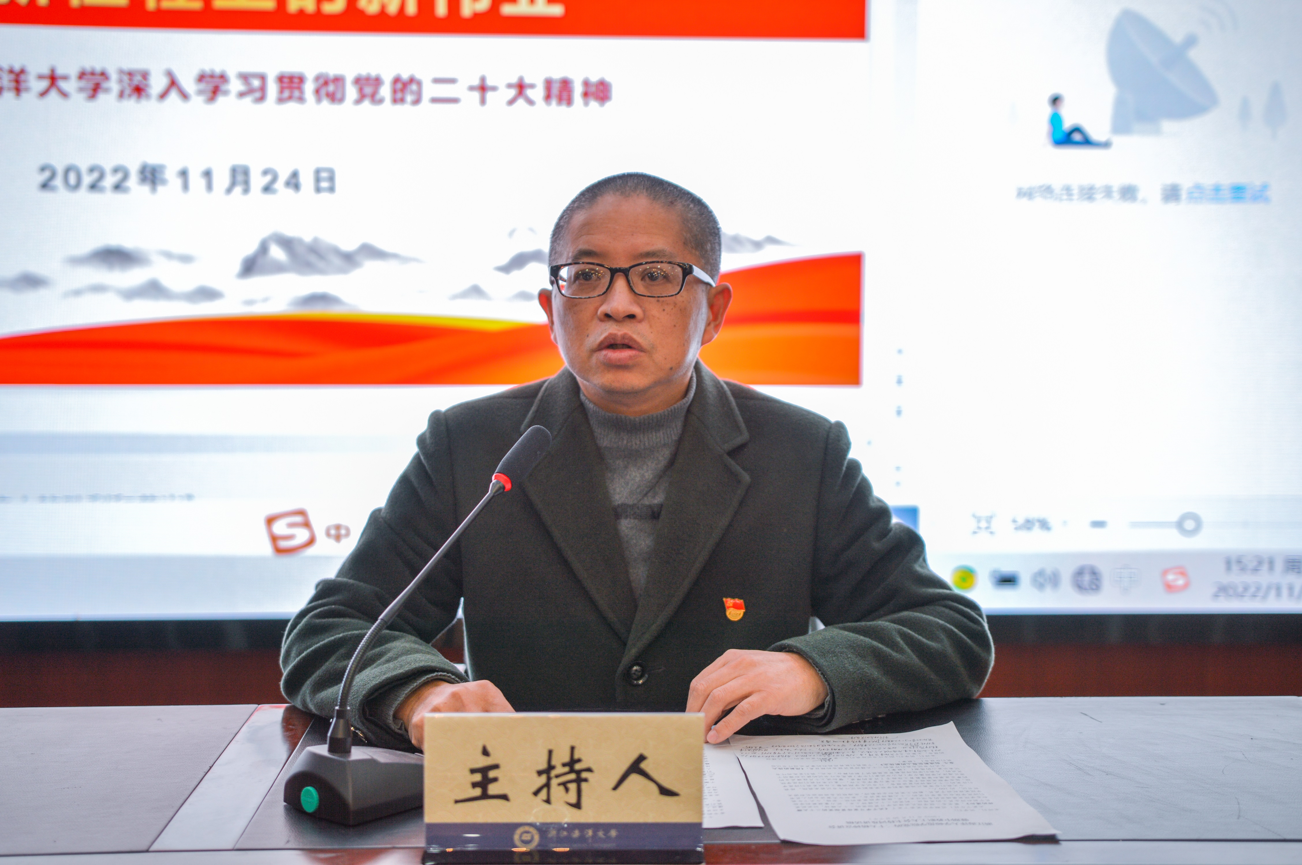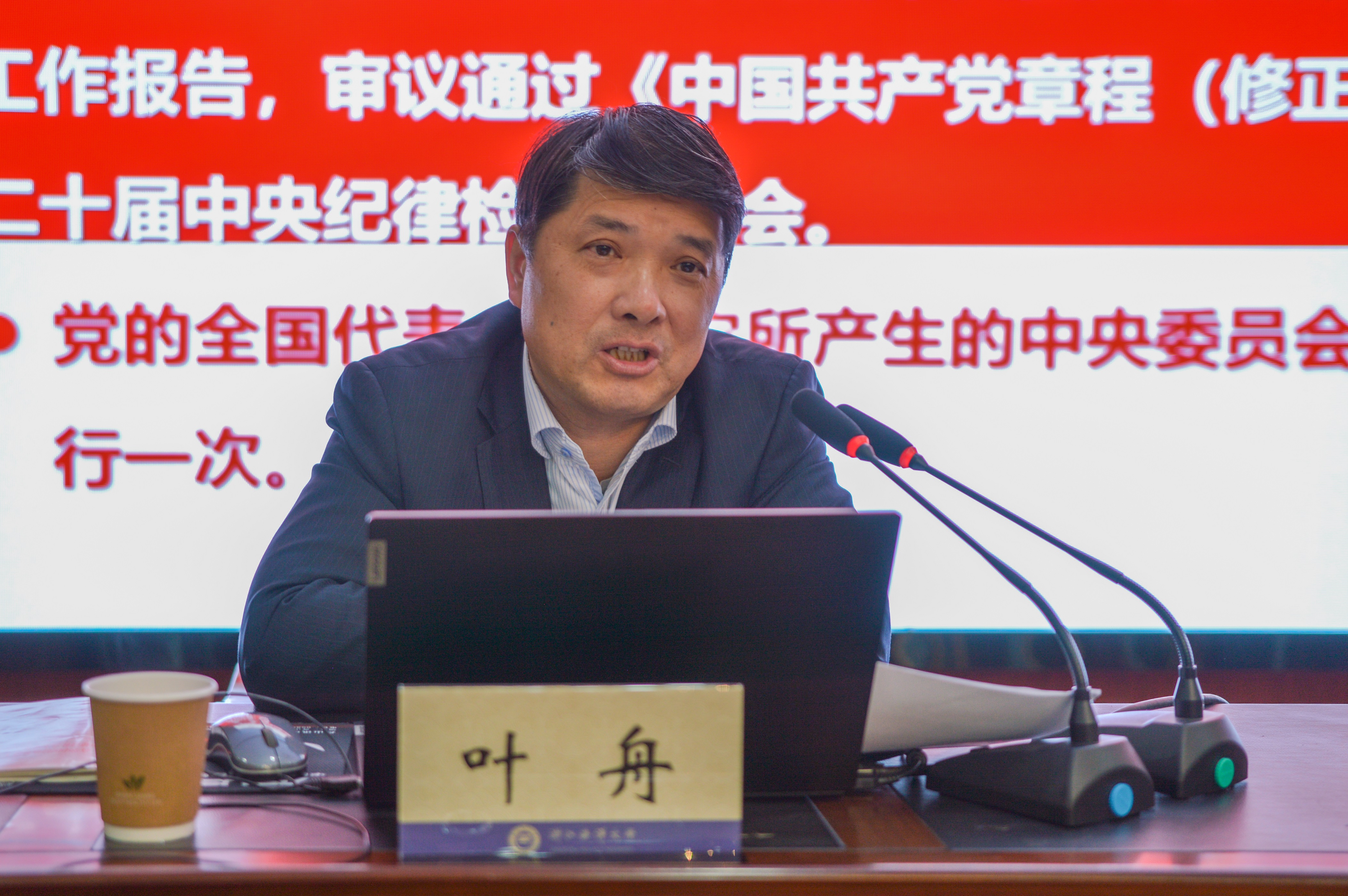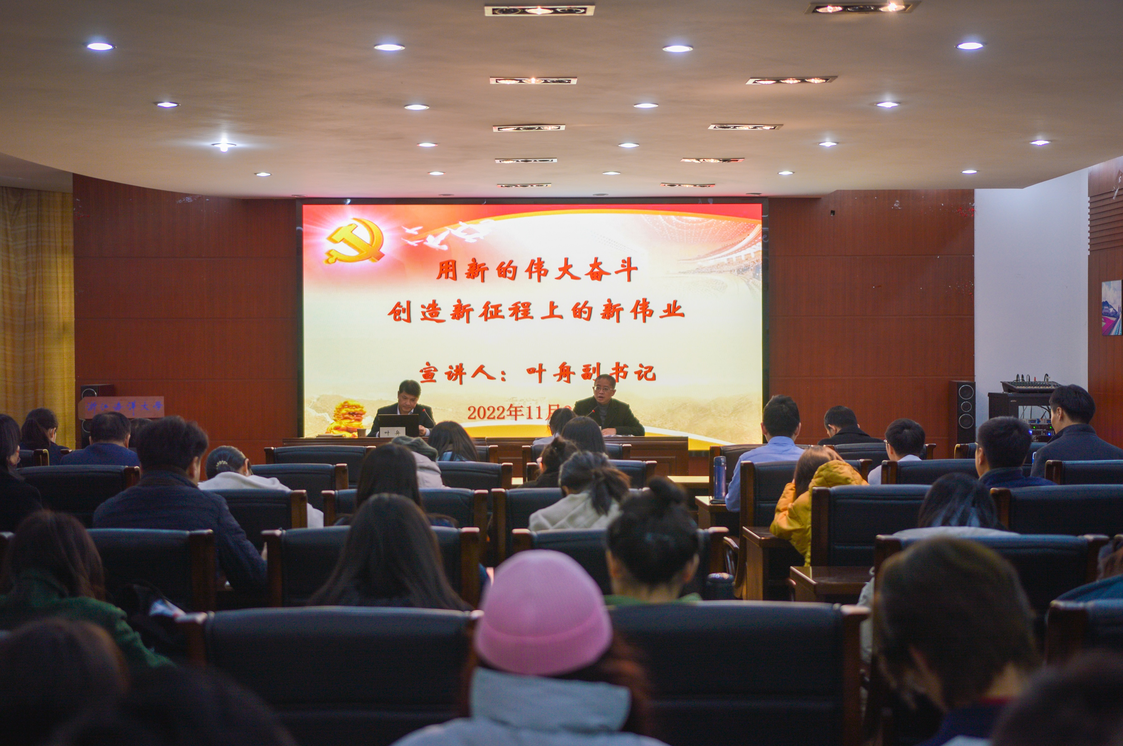 2022年11月30日下午,党的二十大精神宣讲会在定海校区活动中心一楼报告厅举行,永利集团官网党委副书记叶舟为yl9193永利集团师生做了题为“用新的伟大奋斗,创造新征程上的新伟业”的主题宣讲。yl9193永利集团党委、行政和纪委班子成员,教职工党员和教师,定海校区学生代表,共计100余人到场听讲。宣讲会由学院党委书记、副院长杨宁主持。