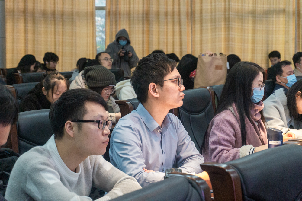 叶书记的宣讲报告从三个方面展开,分别是“党的二十大概况”“做到五个‘牢牢把握’把二十大精神落到实处”和“学习好宣传好贯彻好党的二十大精神”。叶书记首先回顾了中国共产党成立百年来历届代表大会召开的背景,强调党代会都是在历史的关键转折点召开的,党的二十大召开也正值全党全国各族人民迈上全面建设社会主义现代化国家新征程、向第二个百年奋斗目标进军的关键时刻召开的一次十分重要的大会。对照大会报告的十五个部分内容,叶书记具体讲解了“五个牢牢把握”的内涵,提出相应的实际做法,从而帮助大家找到落实二十大精神的实践方法。他通过列举过去五年取得的成就和存在的风险挑战,告诉师生们要牢牢把握过去五年的工作,抓住新时代十年伟大变革的重大意义。关于“五个牢牢把握”需要做到的“六个必须坚持”,叶书记认为可以理解为“站得高”“立得直”“行得稳”“谋得实”“想得全”和“看得远”。叶书记指出,二十大第一次综合提出了“科教兴国战略”“人才强国战略”和“创新驱动发展战略”三个战略,是需要长期坚持的国家重大战略的决策。最后,叶书记结合学校实际,提出应从深刻领悟“‘两个确立’的决定性意义,立足‘红色根脉’独特资源优势,不断创新学习宣传贯彻的平台、载体、抓手,打好学习宣传贯彻组合拳”等五条举措来落实二十大精神。叶书记逻辑清晰而又内容丰富的深知灼见,让在场师生都对党的二十大精神和习近平总书记的报告有了更为深刻的理解。