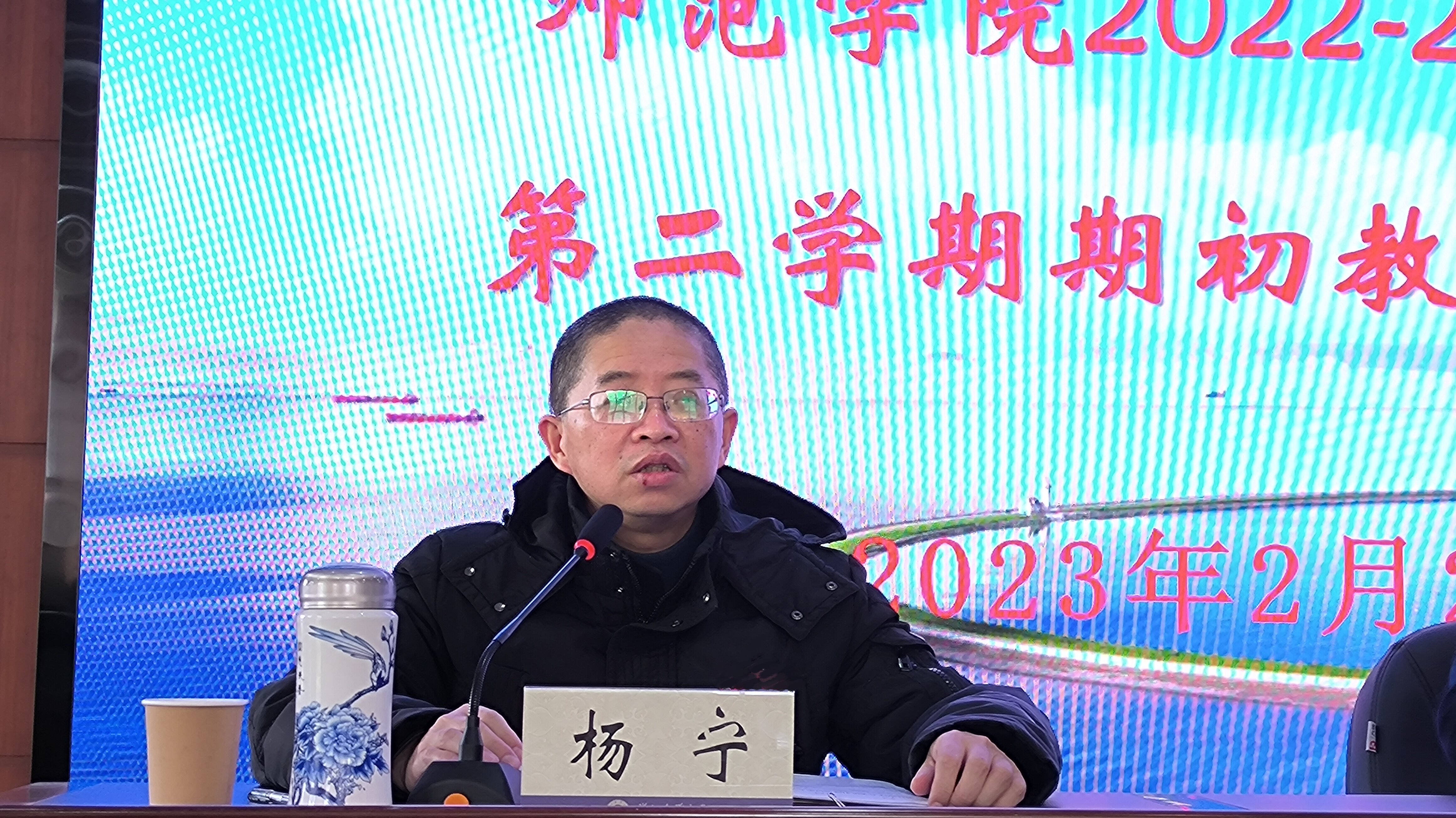 教职工大会上,杨宁书记向大家介绍了去年下半年新入职的9位教师,对他们的到来表示热烈欢迎。他回顾了2022年重大工作成效,省级高校党建工作标杆院系培育创建验收圆满通过,汉语言文学师范本科专业通过第二级专业认证,高层次人才引育工作取得重大突破;谋划了2023年党建工作重点,推动党的二十大精神学习宣贯落地见效,推动党建与业务工作的深度融合,推动“三全育人”试点项目顺利验收。