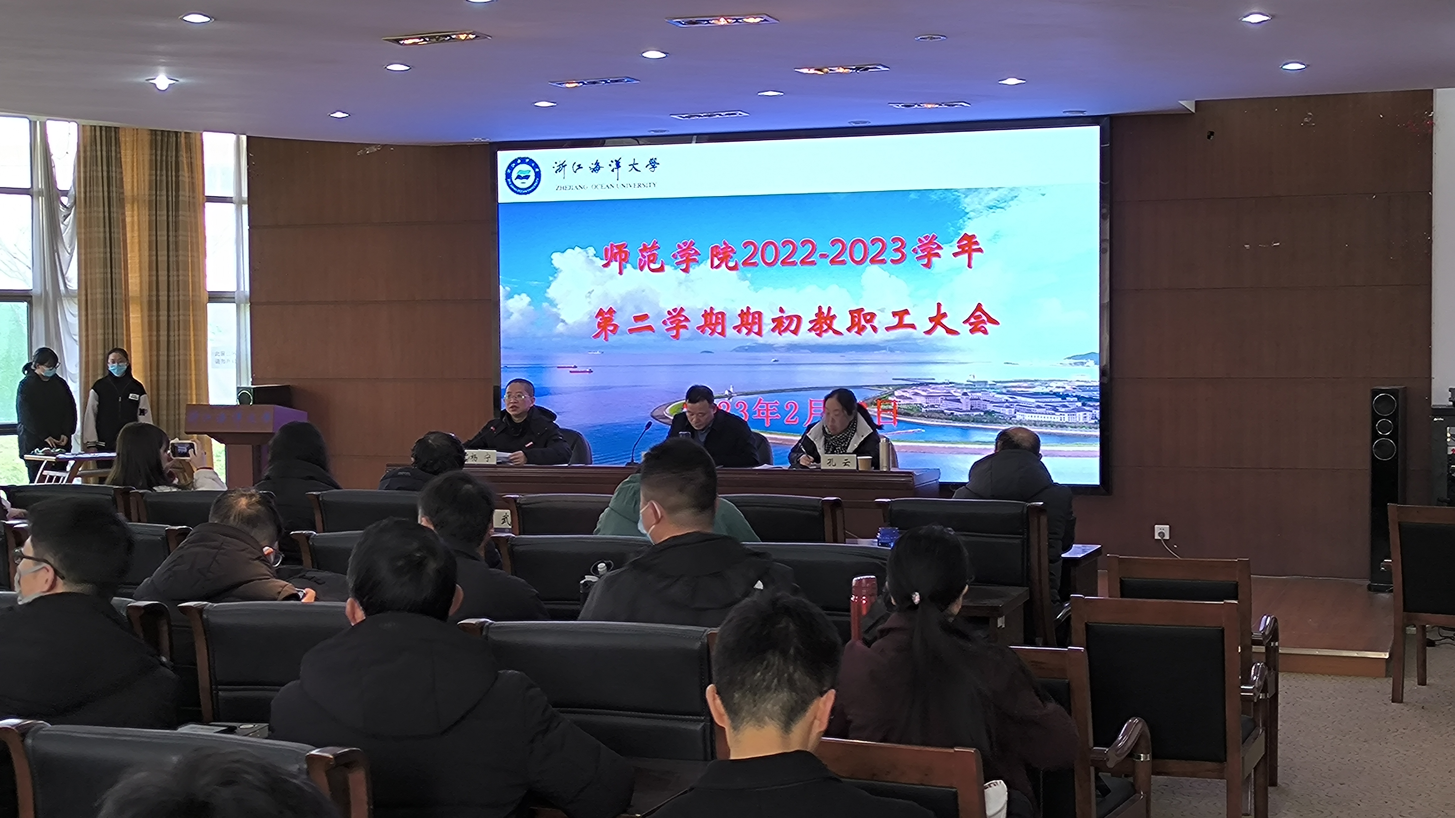 为进一步凝聚力量,谋划新篇,确保新学期工作有序高效开展,2023年2月22日下午,yl9193永利集团在定海校区活动中心报告厅召开春季开学初教职工大会、党员大会、教代会和班主任工作会议。yl9193永利集团党委副书记、院长韩伟表,党委书记、副院长杨宁,副院长、工会主席孔云,学院党政纪班子成员和全体教职工,共计90余人参加相关会议。