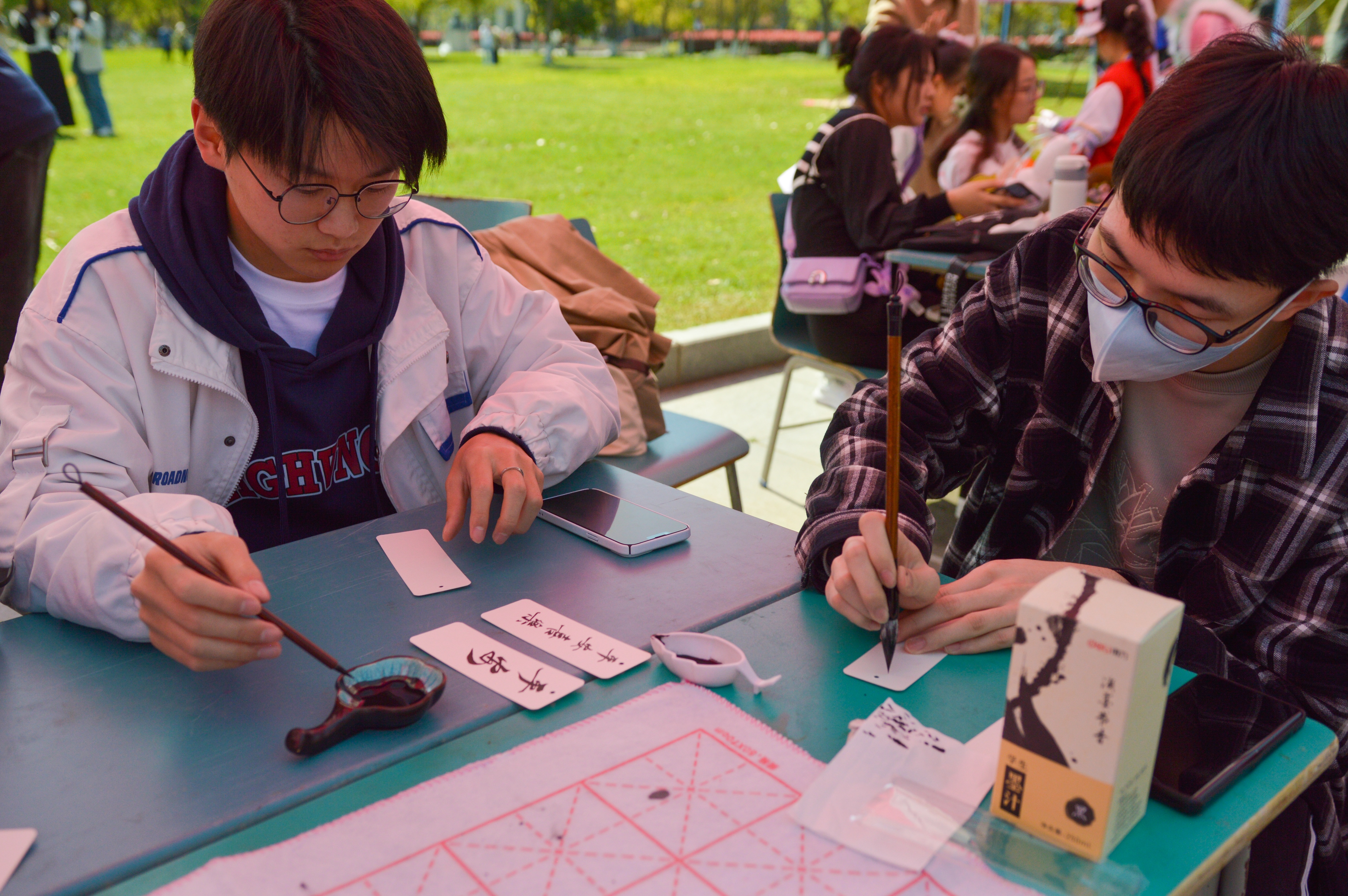 樱花树下,广场一角,时而激昂时而悠扬的朗诵声从清风诗社传出。走进樱花雨里,细致聆听,阵阵风声中有“举杯邀明月”的飞花令,有“同心协力,一张蓝图绘到底”的朗诵诗篇。言为心声,语为人境,一组组同学的动情演讲,带领观众们尽情遨游文字的美妙世界,领略传统文化的瑰丽。