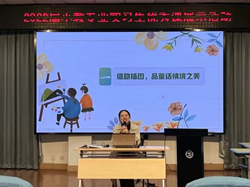 唐文娜副校长用“教课文要用课文教”这句话作为导入,对两位语文方向实习生的展示做了点评,并以两位实习生选择的童话课文为例,进行第一学段童话类文体教学的分享与探讨。此外,唐副校长结合自身经验给予了实习生几点教学建议:一是借助插图,品童话情境之美;二是立足要素,品童话语言之美;三是激活思维,品童话想象之美;四是润物无声,品童话精神之美。