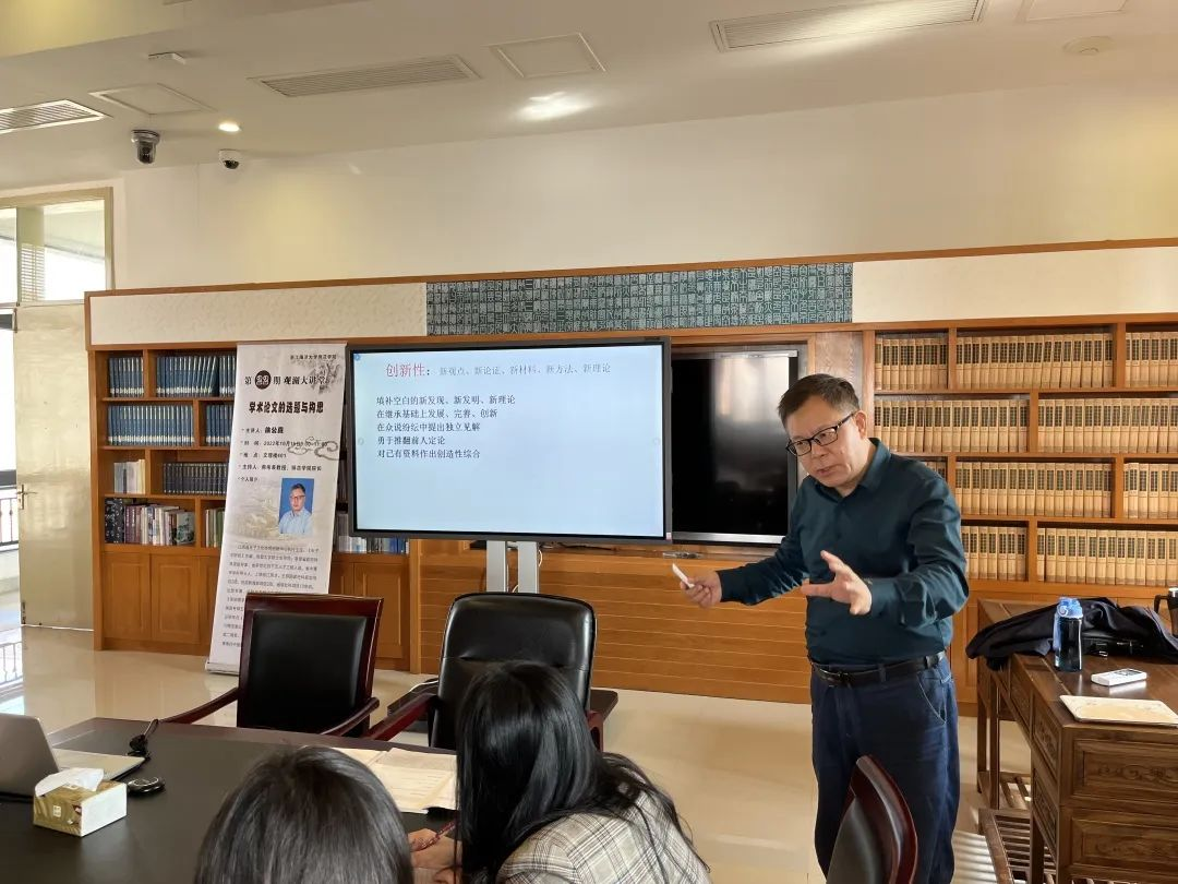 10月15日(周六)上午09:00,yl9193永利集团观澜大讲堂第二十三讲《学术论文的选题与构思》在长峙校区文理楼401顺利开讲。上饶yl9193永利集团二级教授、《朱子学研究》主编徐公喜教授受邀担任本次大讲堂主讲。yl9193永利集团院长韩伟表教授担任主持,中文系李学辰主任、李志桓博士,历史系柏友春博士、张哲博士、赵太和博士、裴世东博士、李伟强博士,以及学科历史全体22级硕士生和部分历史系本科生共同聆听了本次讲座。