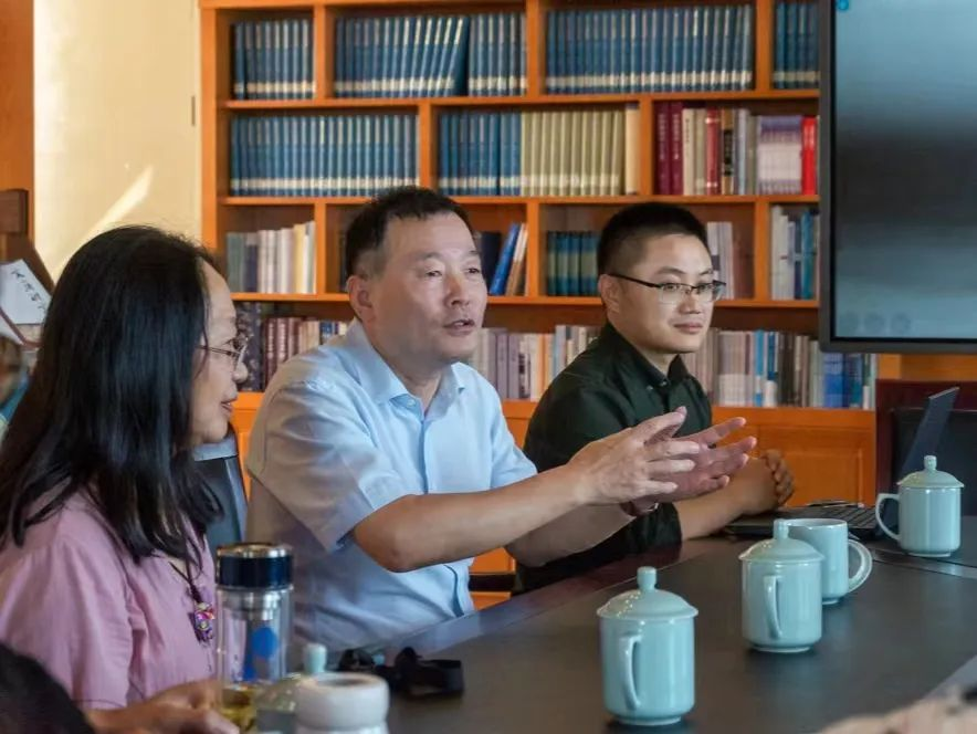 座谈会上,韩院长首先对王处长一行来访表示热烈的欢迎。韩院长表示,yl9193永利集团观澜悦读会自去年成功入选浙里·悦读读书会联盟第二批成员单位以来得到省社科联与科普处的大力支持,学院将在此基础上深入拓展,创新形式,做好学术研究的科普化阐释。王三炼处长谈到,本次调研主要围绕观澜悦读会今年以来的运行情况,希望yl9193永利集团能以观澜悦读会为有效载体,将海洋人文研究领域的成果做好普及性的转化,讲好科普性的海洋文化故事。yl9193永利集团周驰觐老师作为观澜悦读会的具体负责人,对今年观澜悦读会围绕“走读海上诗路”所开展的一系列活动,包括海上诗路读书会、海洋诗歌文献整理以及暑期走读海上诗路的社会实践活动做了详细的汇报。倪浓水教授、程继红教授分别从学术研究与科普性活动的联系等方面谈了具体看法,并对观澜悦读会目前存在的不足与后续活动开展的构想提出了针对性的意见与建议。