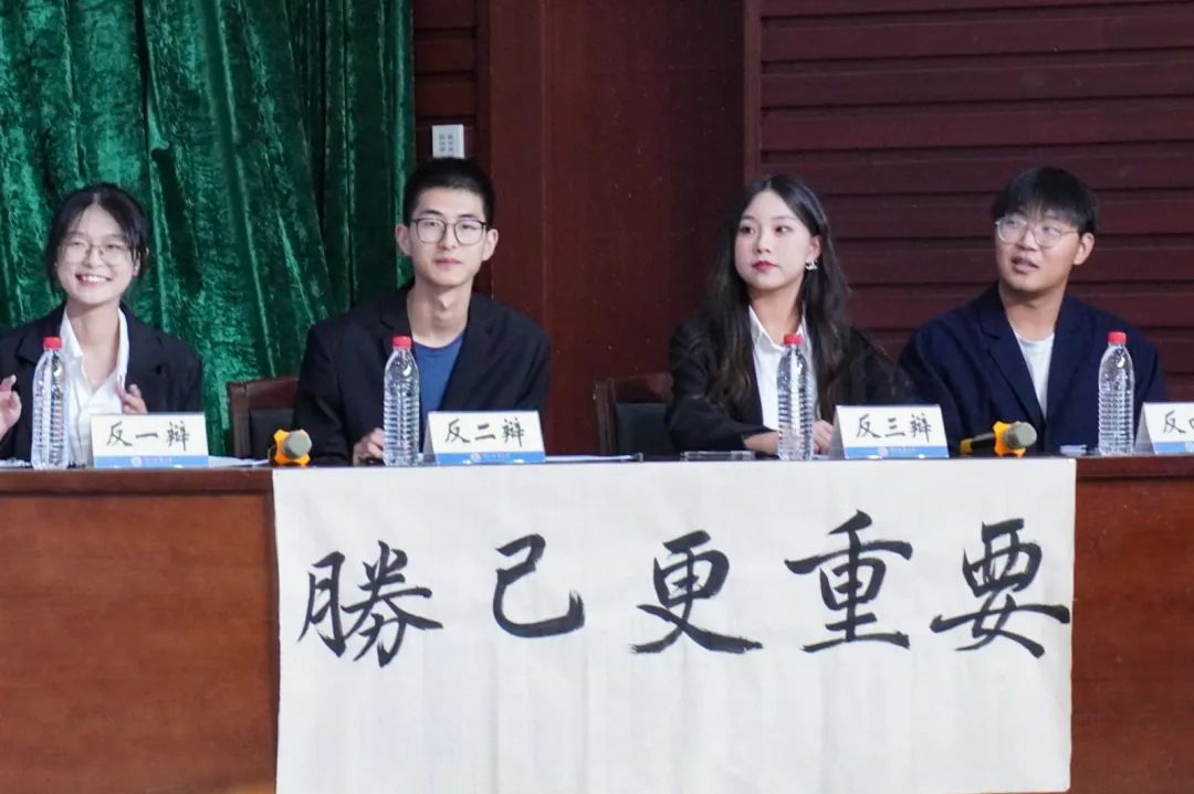 本次比赛中,双方辩手就“对当代青年而言胜人更重要还是胜己更重要”展开激烈交锋。