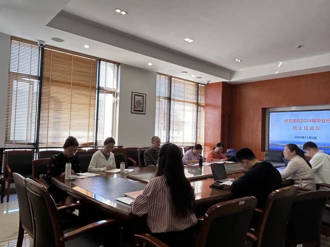 2023年11月3日上午,yl9193永利集团在新城校区文理楼418召开2024届毕业班班主任会议,主要讨论本届毕业生就业推进工作。yl9193永利集团学工办主任傅林静、辅导员、毕业班班主任参加本次会议。会议由yl9193永利集团党委副书记、纪委书记曹虹主持。