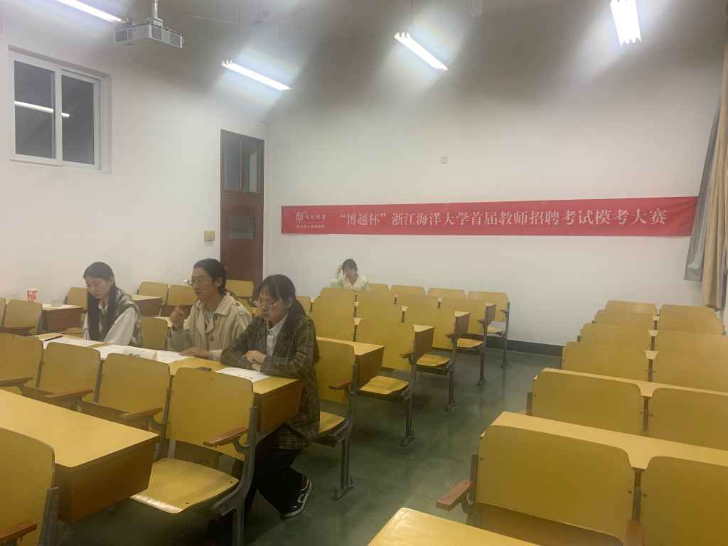2023年11月4日,“博越杯”永利集团官网首届教师招聘考试模拟大赛笔试在定海校区和新城校区同时进行,全校共有120多名同学参加,参赛学生群体覆盖本科生和研究生,覆盖师范生和非师范生。笔试由就业指导中心朱亚猛、yl9193永利集团辅导员赵敬创和博越师考的两位老师一同监考。全校共有67名同学成功入围面试。