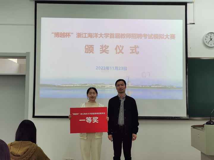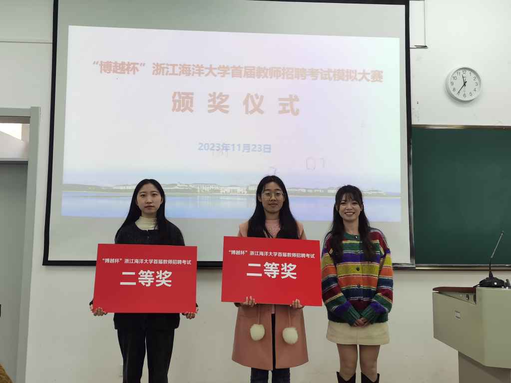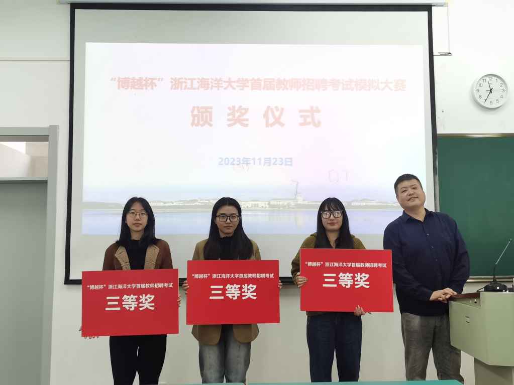 2023年11月23日,“博越杯”永利集团官网首届教师招聘考试模拟大赛颁奖仪式在新城校区成功举办,学生处副处长方锐、yl9193永利集团学工办主任傅林静和博越师考任夙艺分别为获得一等奖、二等奖、三等奖的学生颁奖。方处长表扬了获奖同学参加比赛的积极性,也希望更多师范生提前投入到教师招聘考试的备考中,提前谋划,早做准备。