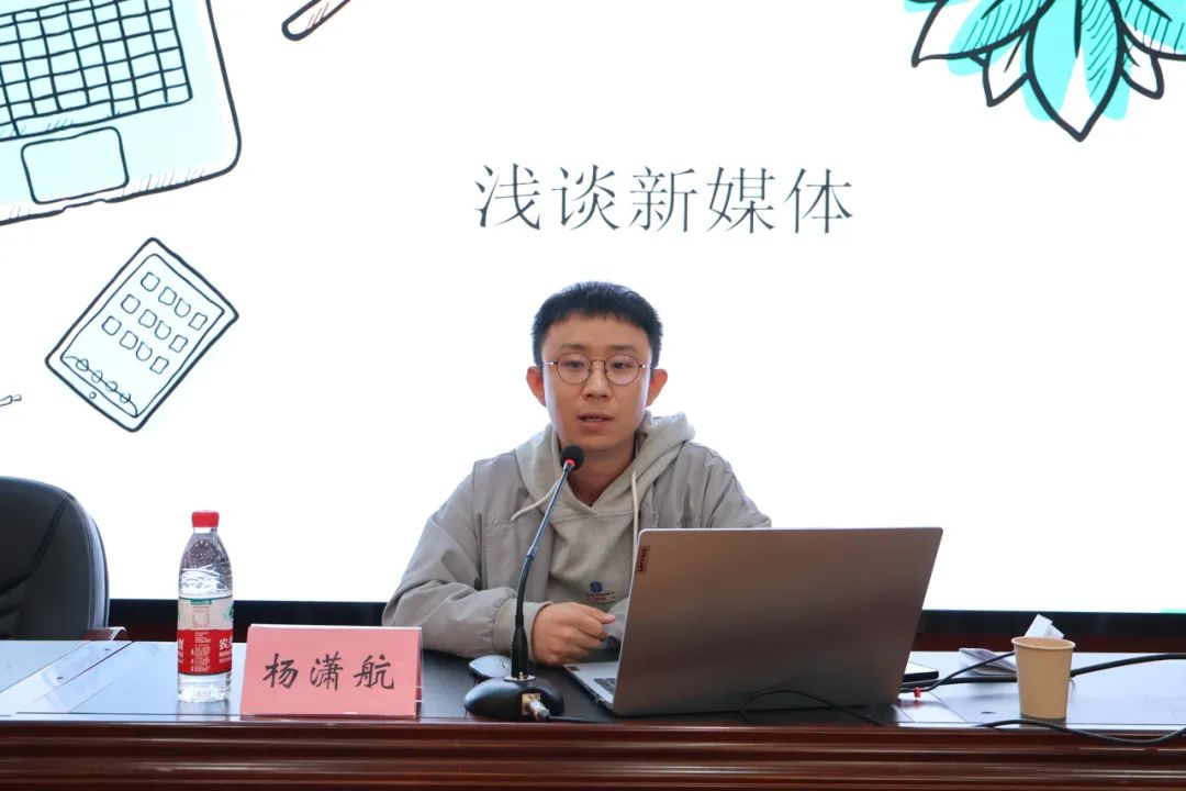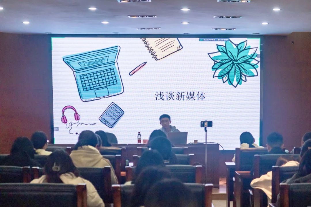 杨老师以新媒体的基本特征为切入点,对比分析了新媒体和传统媒体在传播载体、传播时效、受众需求方面存在的显著差异,点明了其目前在众多领域拥有的重要地位。他通过联系当下新媒体平台上存在的典型现象,围绕新媒体平台、营销、风险与挑战、未来发展这四个方面展开详细介绍,进一步增进了同学们对新媒体的认识与理解。随后杨老师从广阔的社会视角转向校园媒体的发展时谈到,在如今数字化时代,新媒体已经成为学校与学院开展宣传工作的重要手段,着重关注新媒体运营的方向与内容是未来宣传工作的一大重点。同时,特别是在学院的宣传工作中,要做到着眼于学院特色,推送个性化与热点性内容,及时关注时间节点,聚焦主旋律,传播正能量,以小见大,以心创新,推动师院宣传工作向上向前发展。