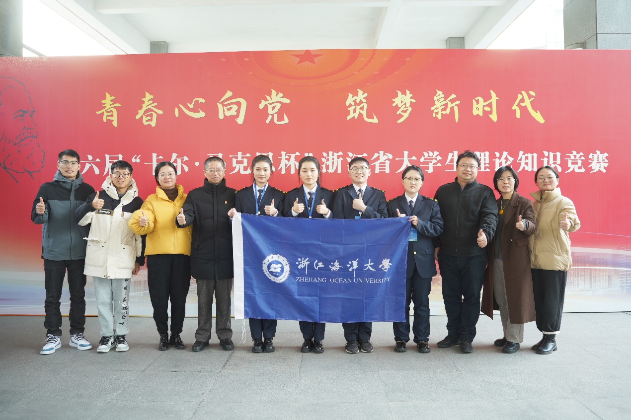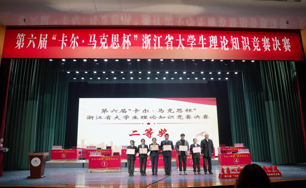 2024年1月7日,以“青春心向党、筑梦新时代”为主题的第六届“卡尔·马克思杯”浙江省大学生理论知识竞赛决赛在浙江工商大学圆满落下帷幕,经过前期激烈的初赛、复赛,我校4名同学组成的代表队奋力拼搏挤进决赛,最终获得普通本科组团体二等奖,这是我校首次进入决赛,为我校众多学子全面参赛划上了一个喜人的句号。