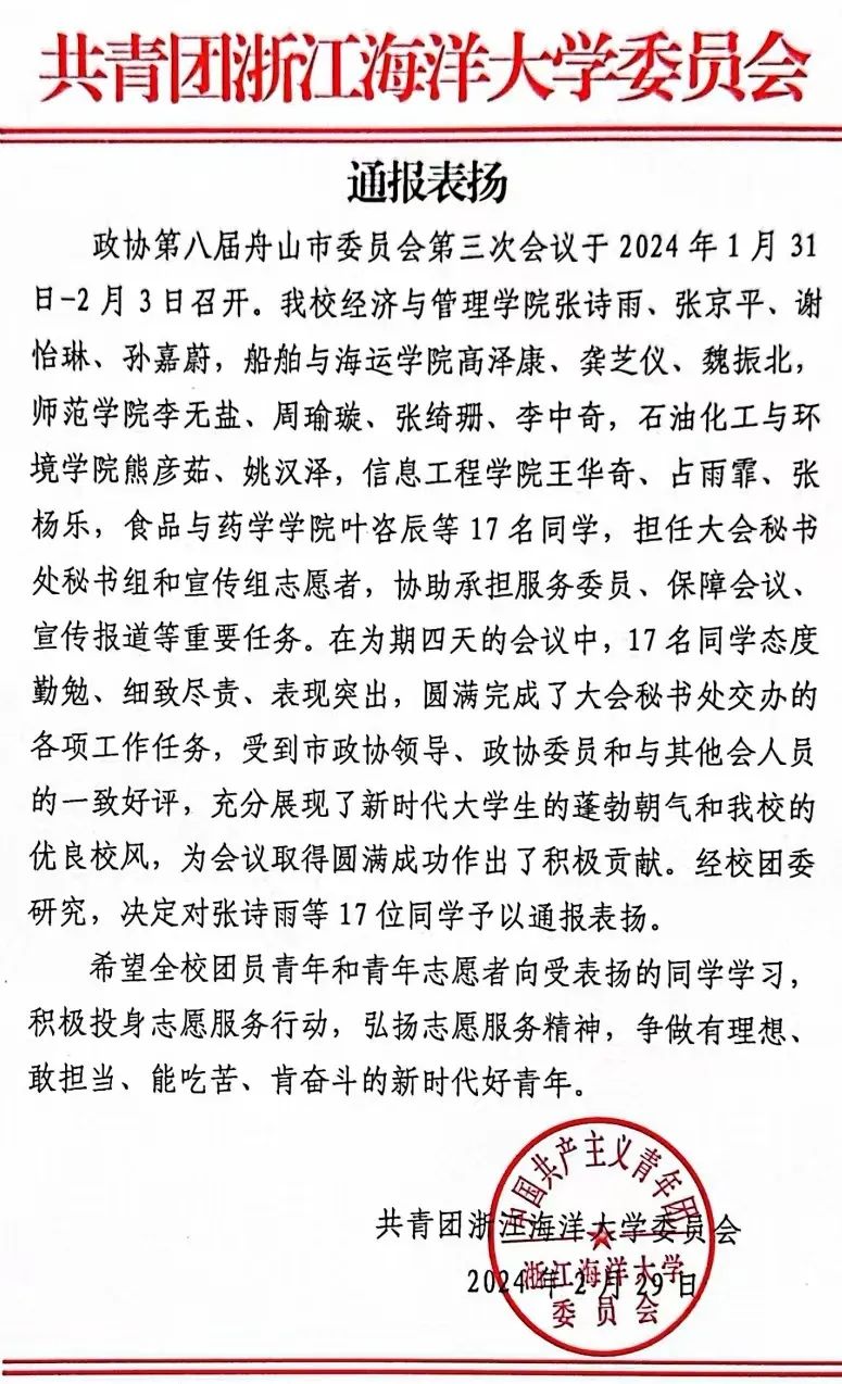近日,政协第八届舟山市委员会第三次会议顺利召开。我校的17名学子以大会秘书处秘书组和宣传组志愿者的身份,积极配合工作,赢得了市政协领导、政协委员和与会人员的一致好评。