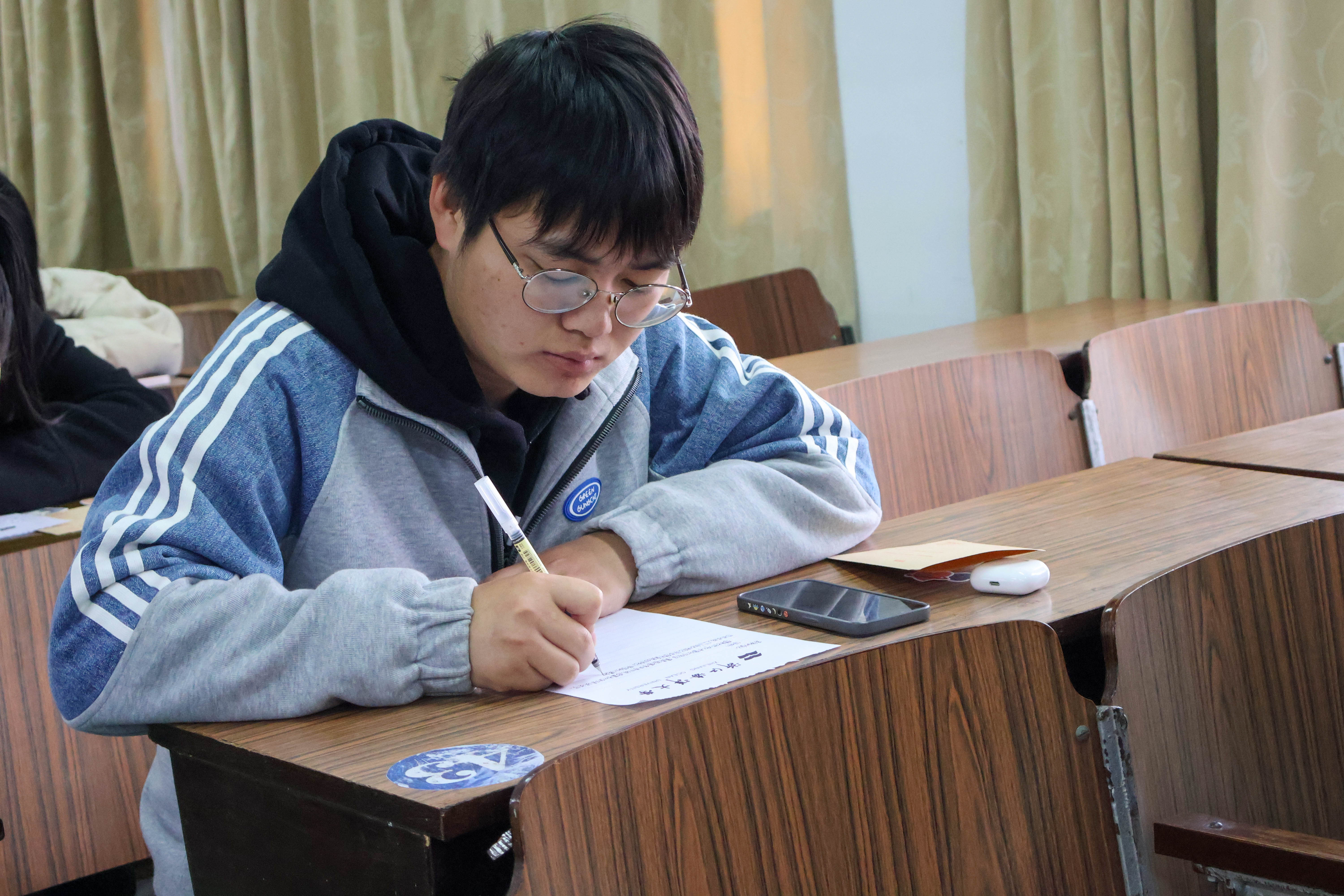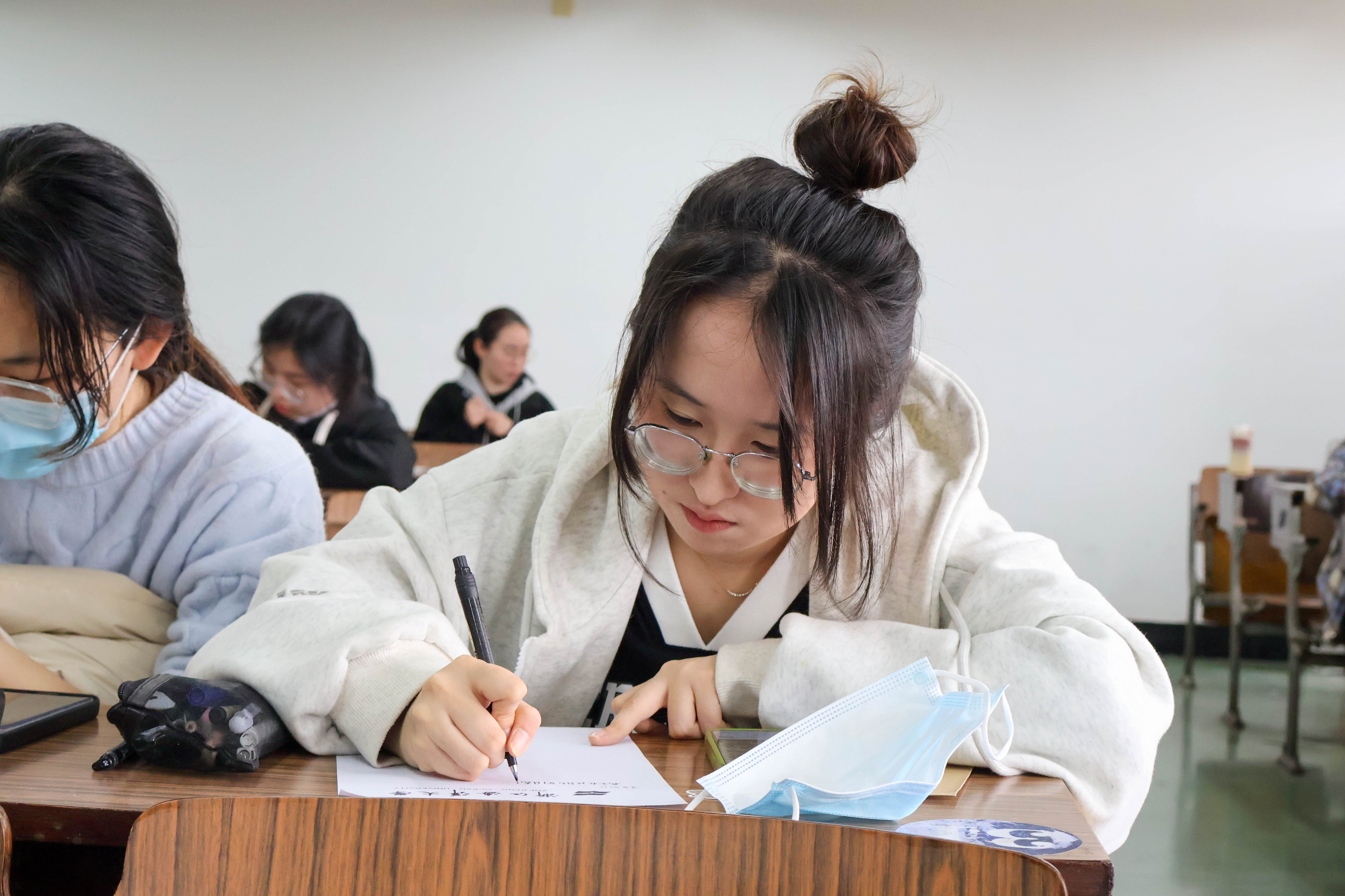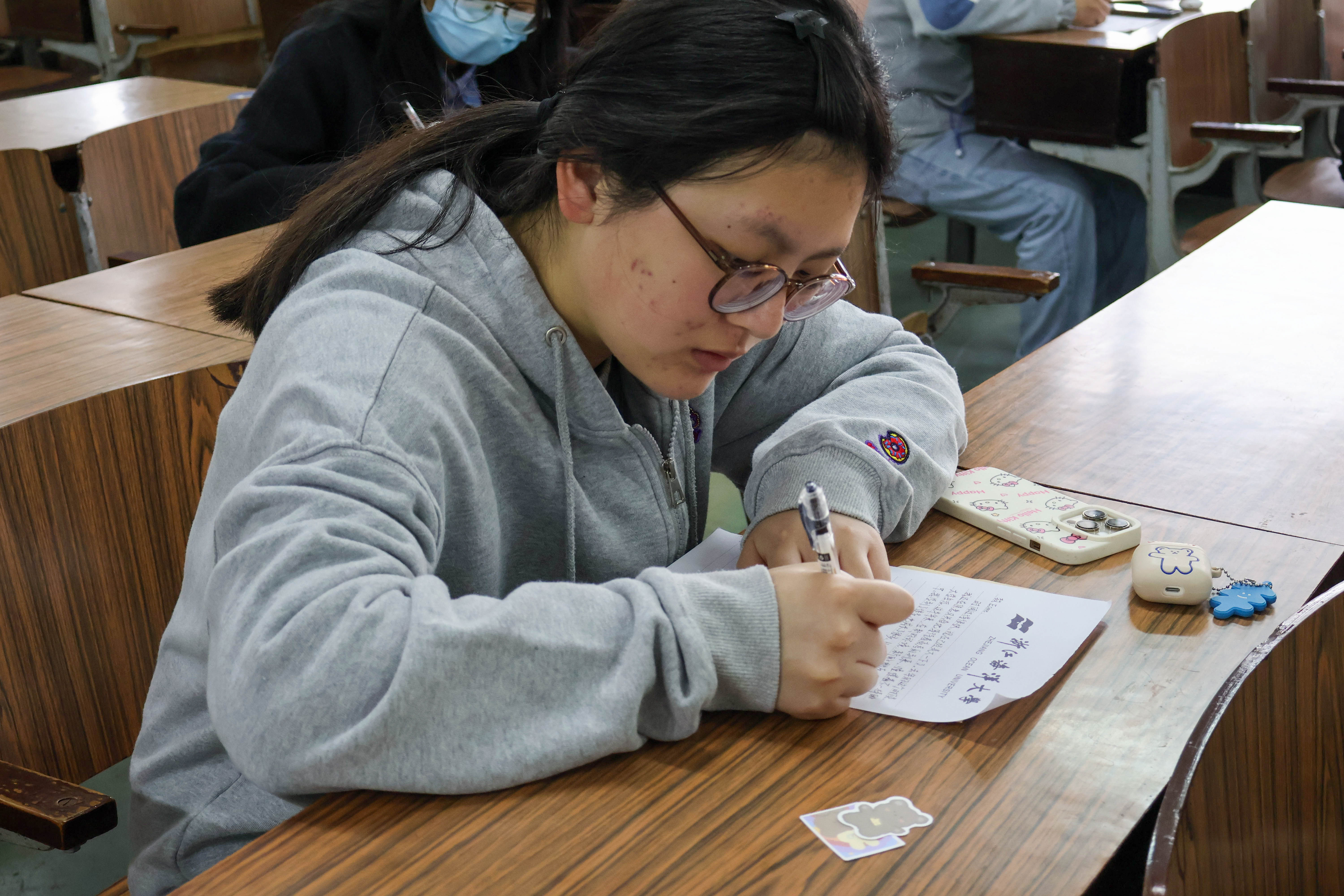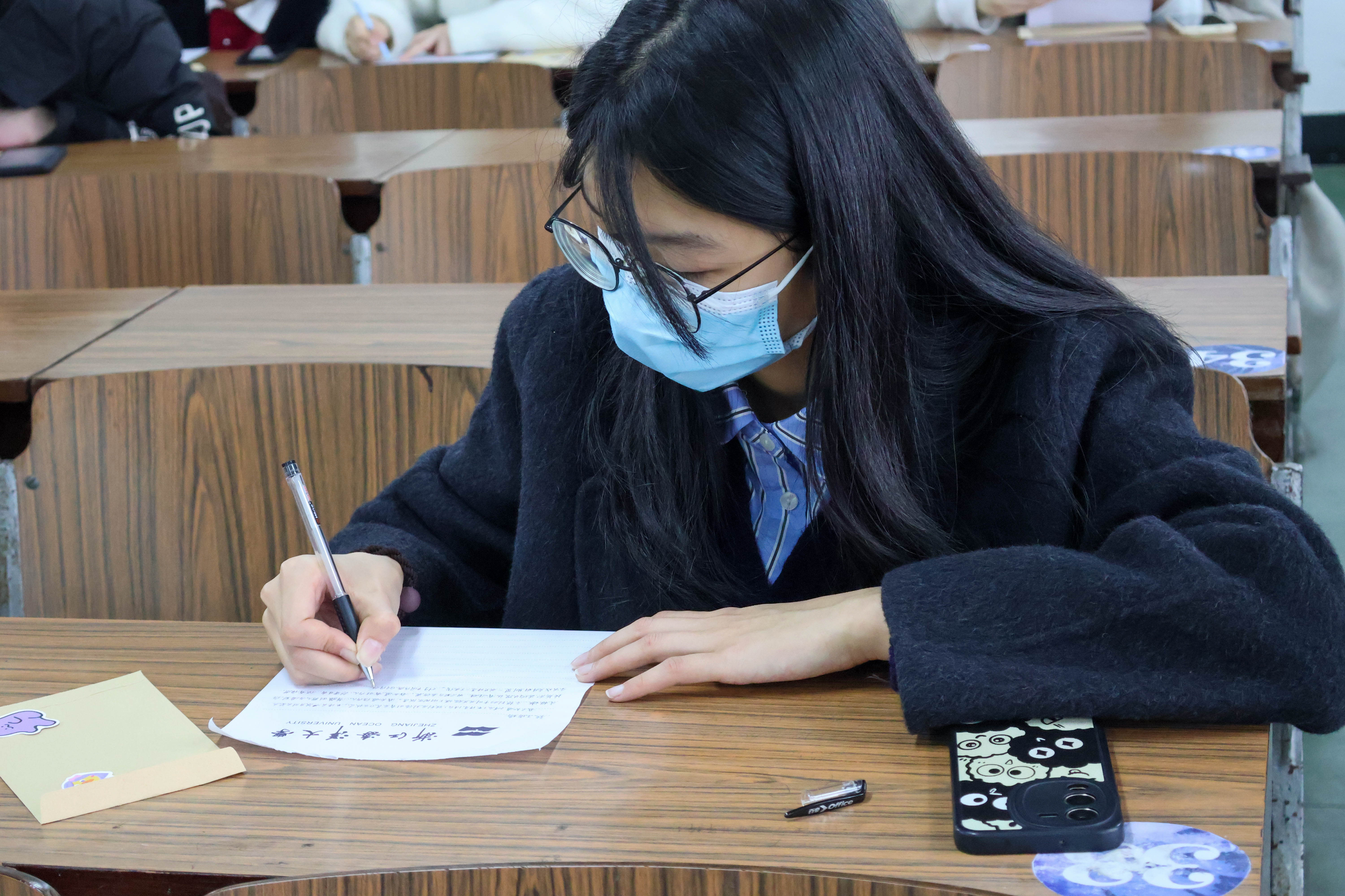 活动伊始,工作人员有序发放信纸信封等写信用具,主持人孙春瑶和南欣悦简单地介绍了此次活动的流程和背景,她们提到,此次活动的举办是让同学们在这生命力独享风流的季节,抛却不快,将目光放远,以新的姿态和热忱的心境书写未来,挑战自我。等到同学们毕业,工作人员会把信件邮寄回他们手中。随后,同学们便认真地投入到这场自我对话中,静心思考,执笔临摹未来的蓝图。笔尖与信纸的碰撞,或是迷茫,或是期盼,但都是属于自己的思考。无论是以梦为马,不负韶华,还是千回百转,重谱华章,沿途都各有各的风景,每个人都在书写自己的答案。