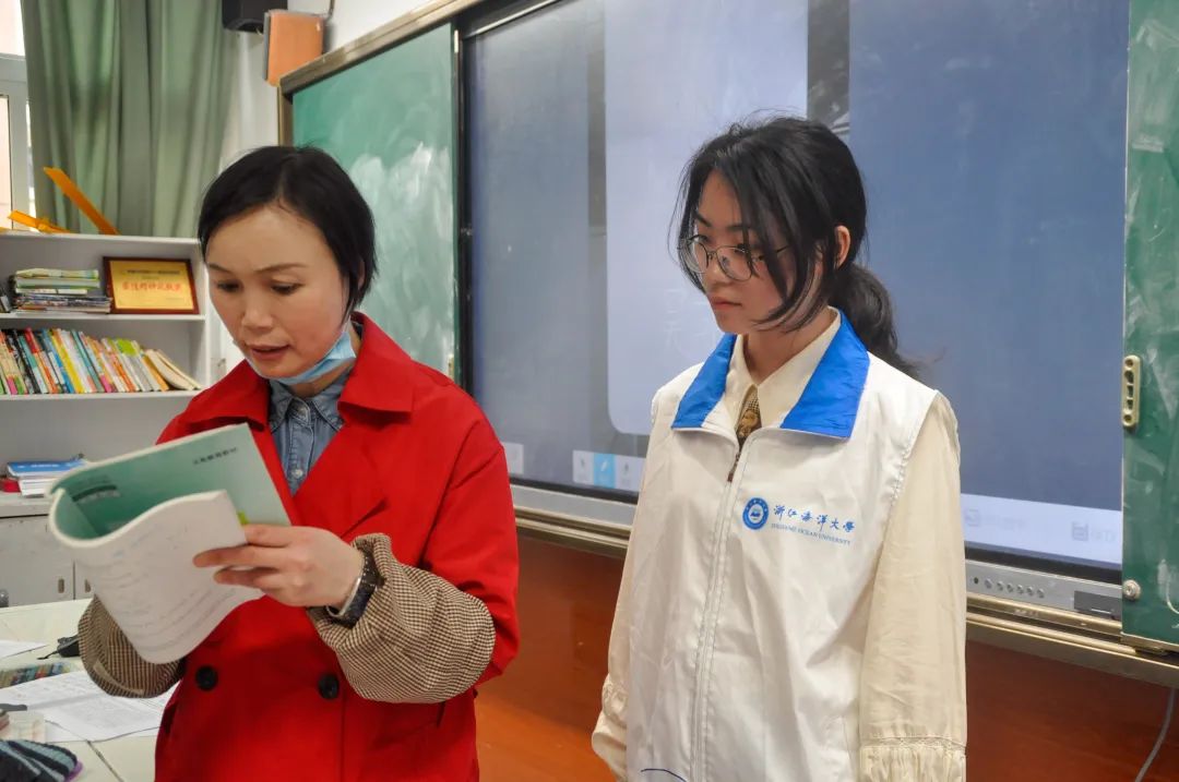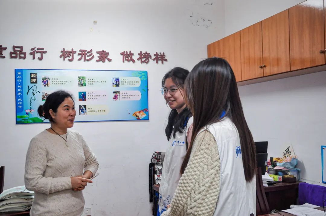 在舟嵊小学张老师的带领下,志愿者们熟悉了校内的三所教学楼和各年级的分布情况。随后,年级组长遵循“一人一班”的原则为志愿者们进行了班级和任务的分配。