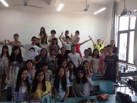 文秘英语由外教授课(图为外教与文秘班学生的合影)