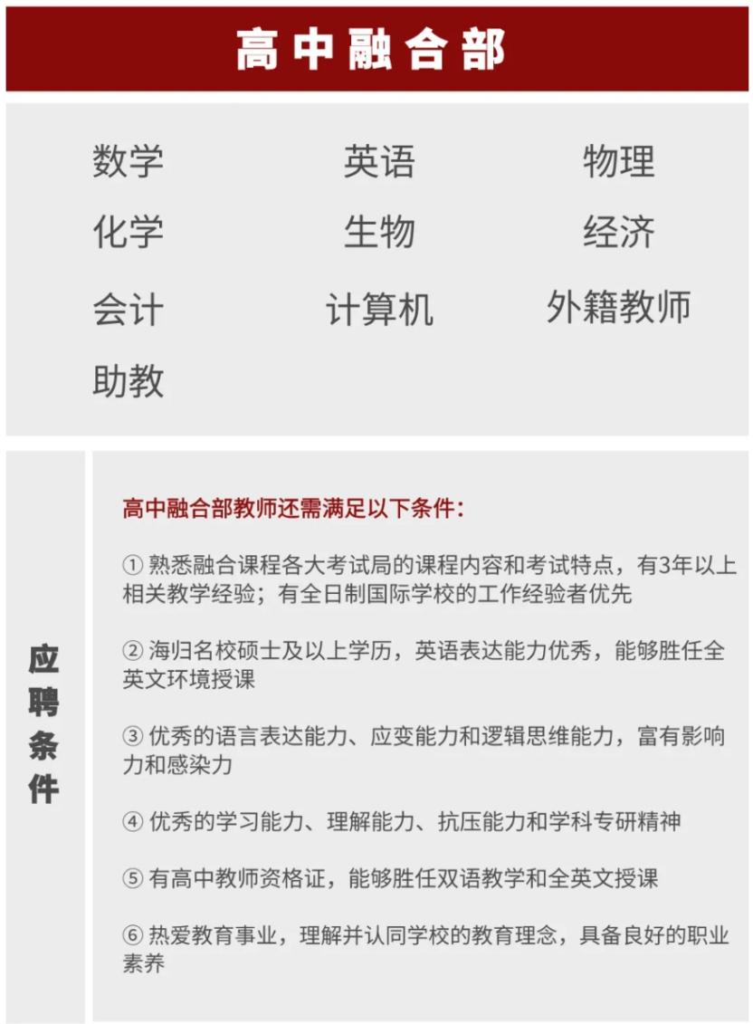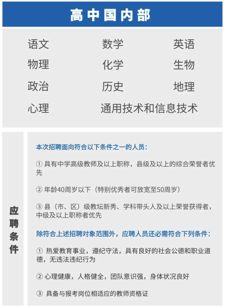为进一步发展学校事业,打造卓越教师团队,欢迎符合招聘范围和条件的优秀成熟教师报名参加选聘: