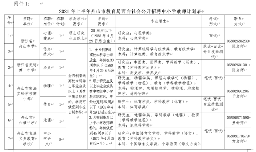 考试工作由舟山市教育局会同各招聘学校负责组织实施。