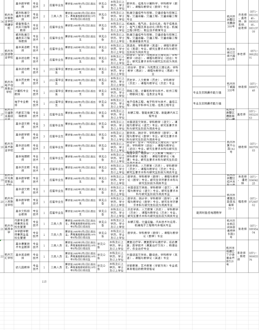 7.具备招聘岗位要求的其他条件,详见《杭州市教育局所属事业单位2021年5月份公开招聘计划表》(见附件1)。